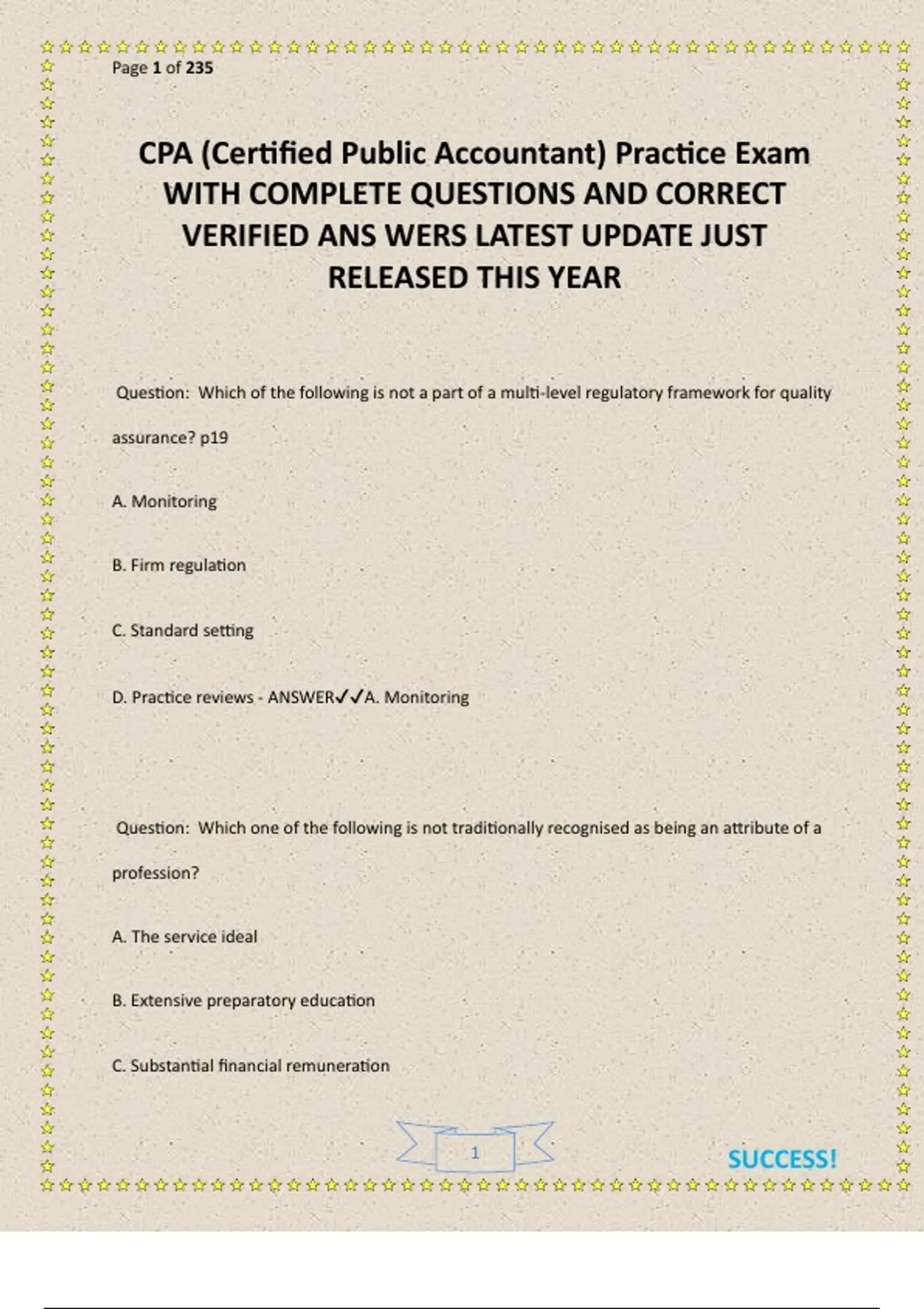 CPA (Certified Public Accountant) Practice Exam WITH COMPLETE QUESTIONS AND CORRECT VERIFIED ANS WERS LATEST UPDATE JUST RELEASED THIS YEAR