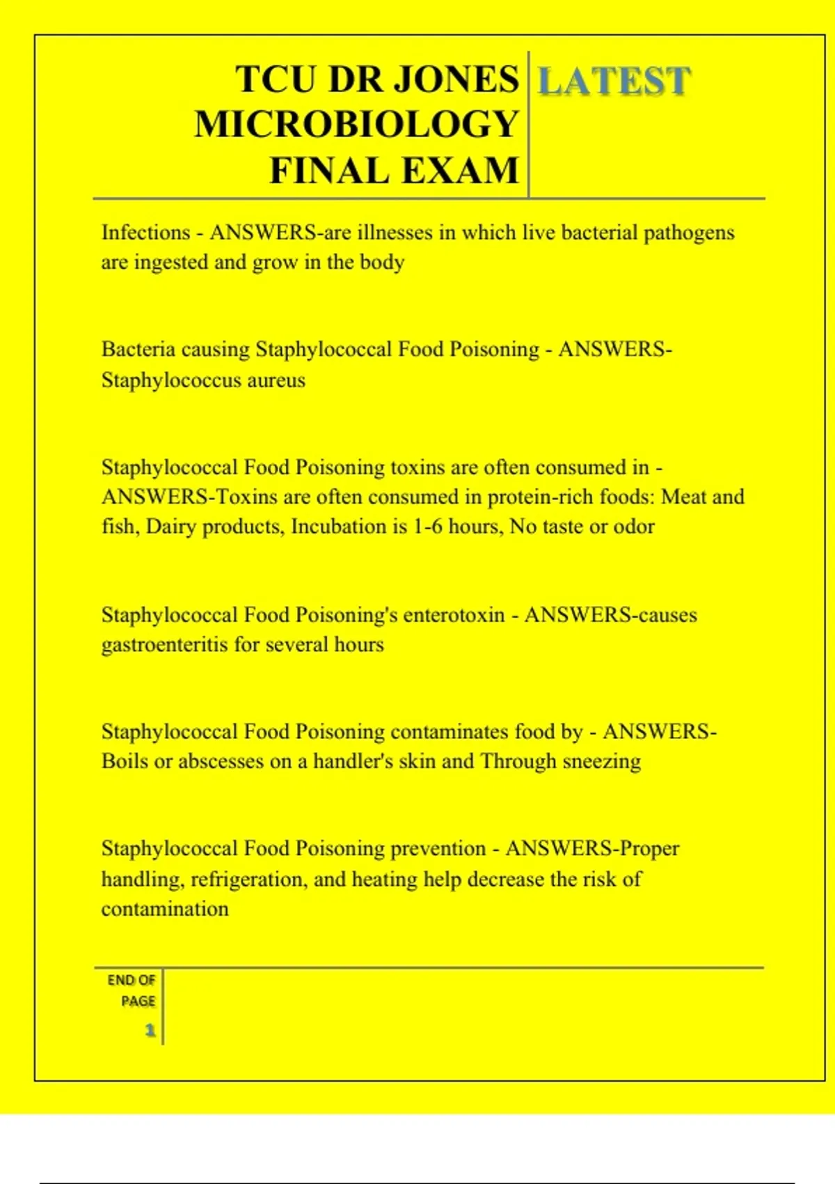 TCU DR JONES MICROBIOLOGY FINAL EXAM QUESTIONS AND ANSWERS 2026