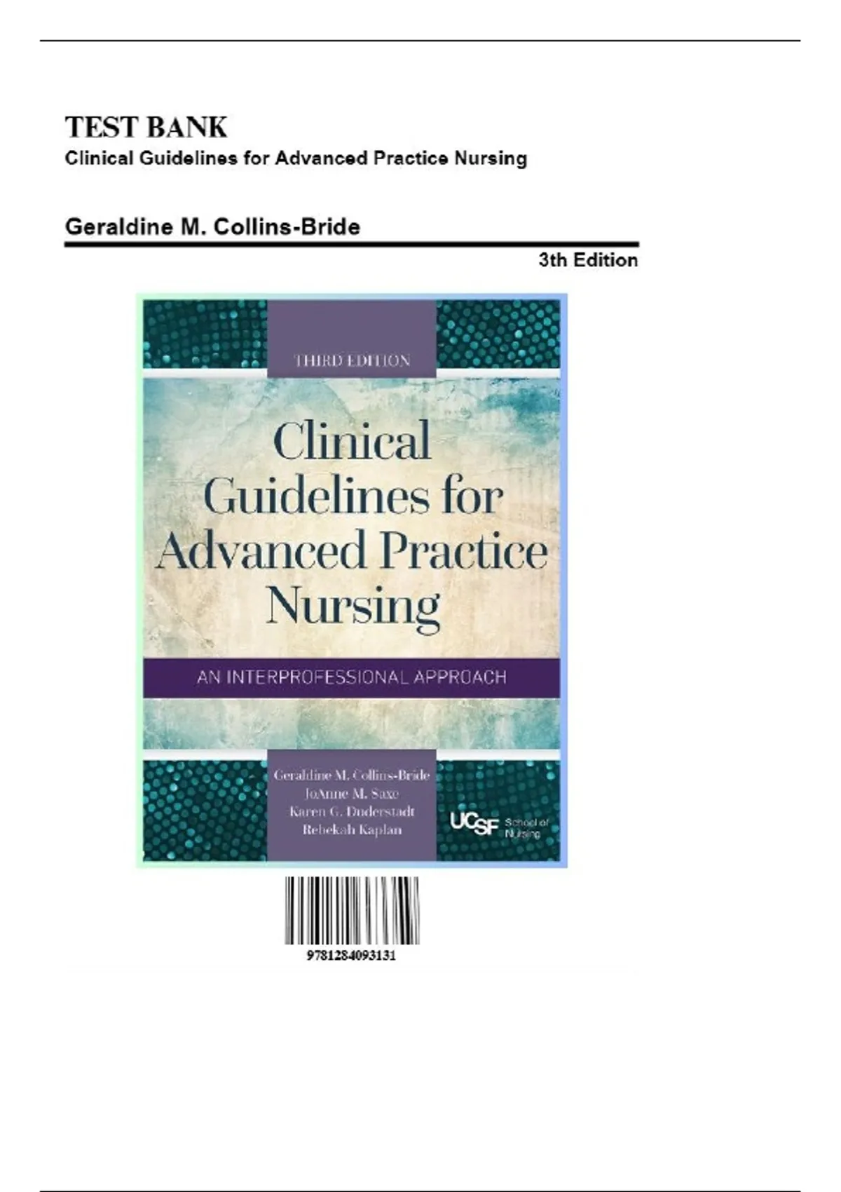 Test Bank for Clinical Guidelines for Advanced Practice Nursing, 3rd Edition by Geraldine M. Collins-Bride, 9781284093131, Covering Chapters 1-71 | Includes Rationales
