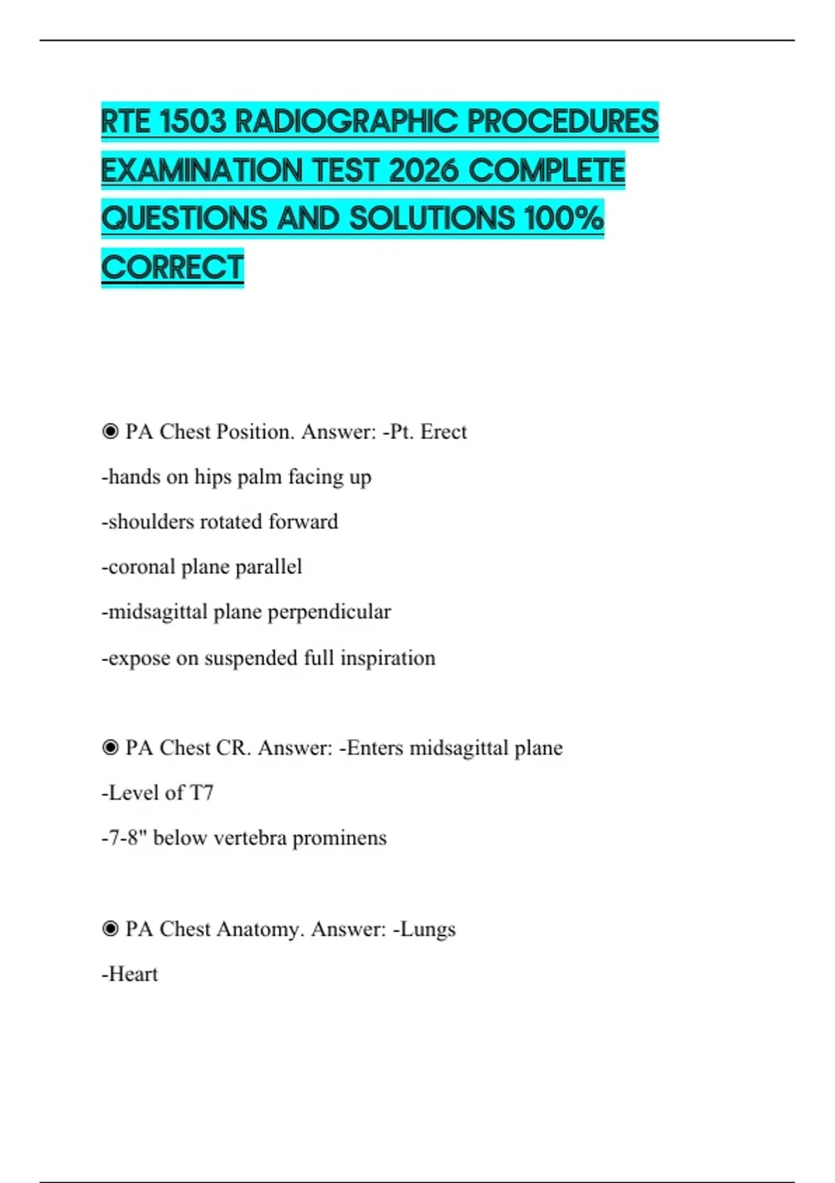 RTE 1503 RADIOGRAPHIC PROCEDURES EXAMINATION TEST 2026 COMPLETE QUESTIONS AND SOLUTIONS 100% CORRECT
