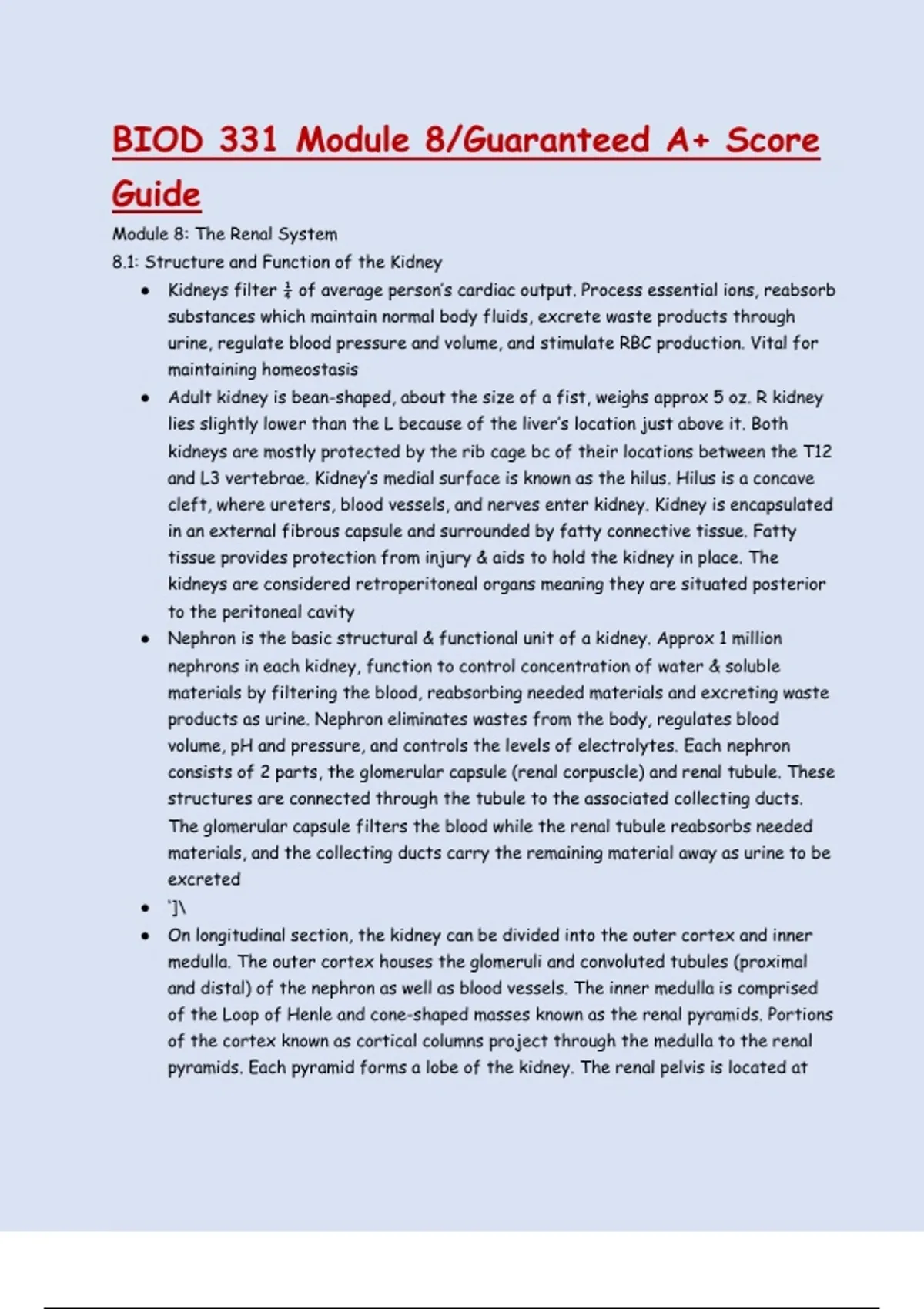 BIOD 331 Module 8/Guaranteed A+ Score Guide/Latest Updated Solution