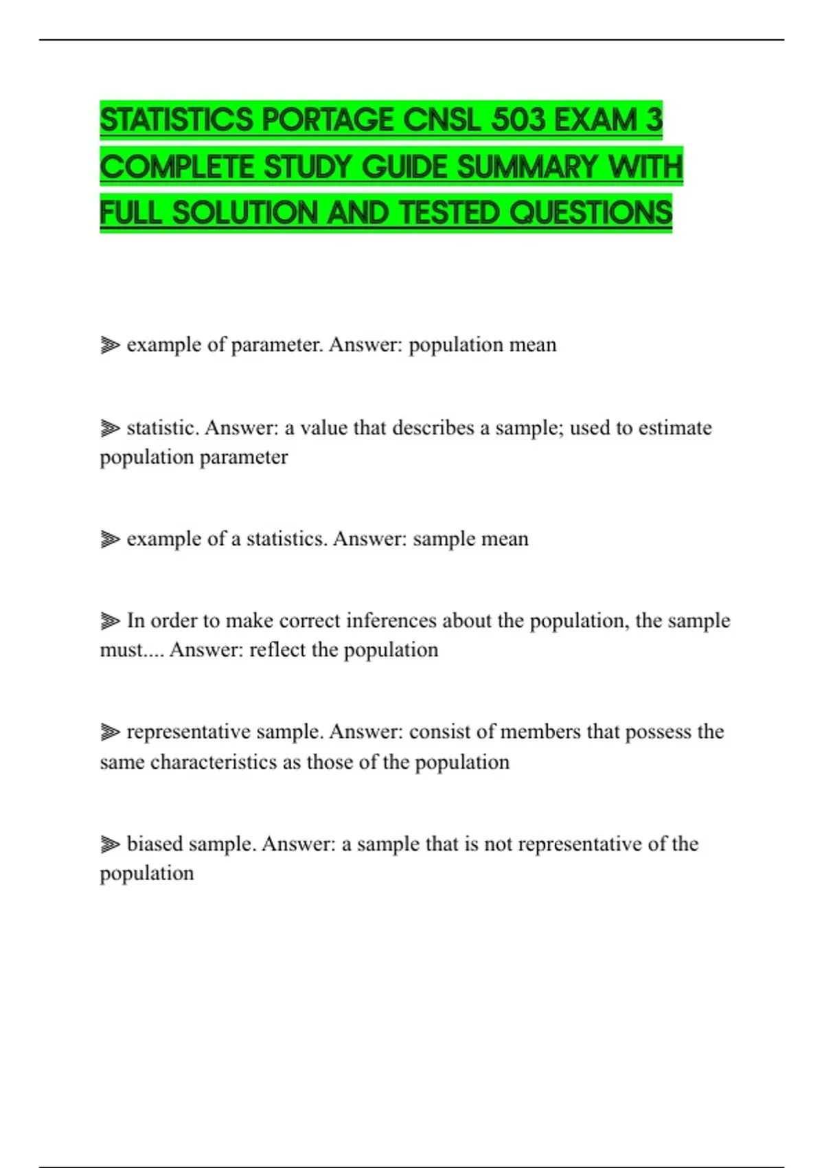⫸ statistic. Answer: a value that describes a sample; used to estimate