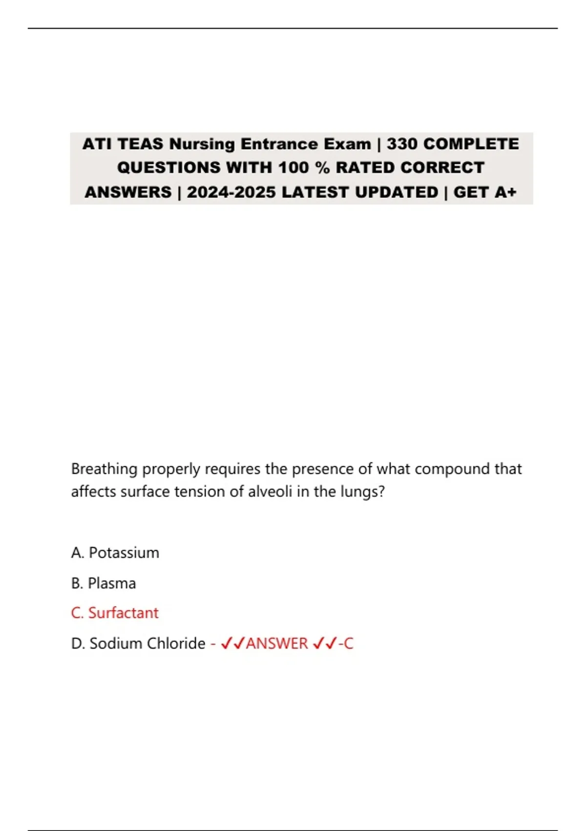 Get 330+ ATI TEAS nursing entrance exam practice questions with verified answers. Updated for -2025. Includes science, math, English, and more.