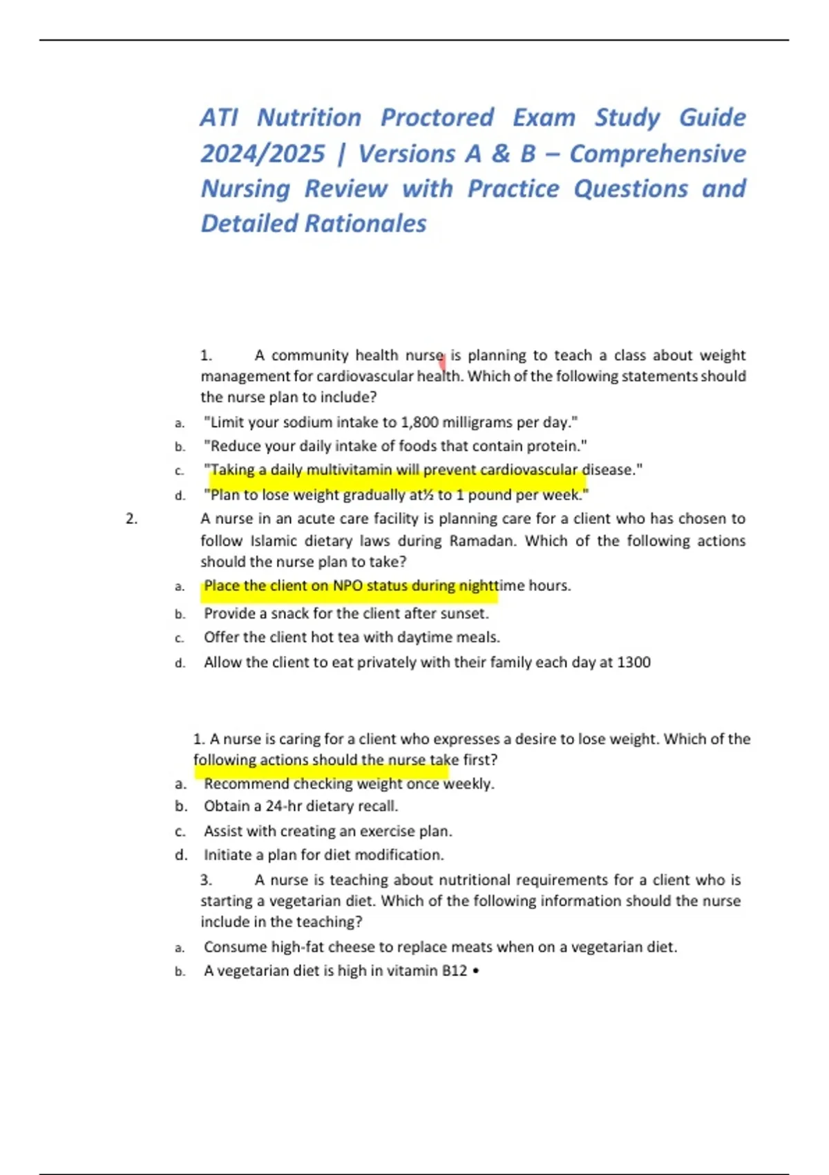 1. A nurse is caring for a client who expresses a desire to lose weight. Which of the