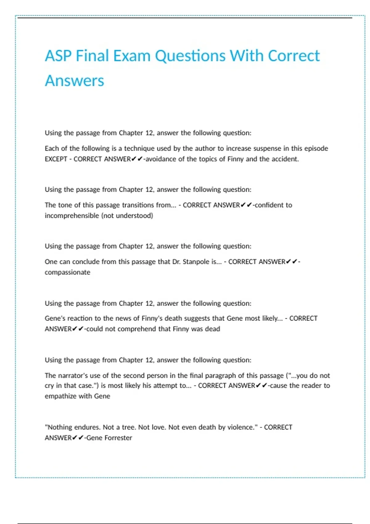 EXCEPT |- |CORRECT |ANSWER✔✔-avoidance |of |the |topics |of |Finny |and |the |accident.