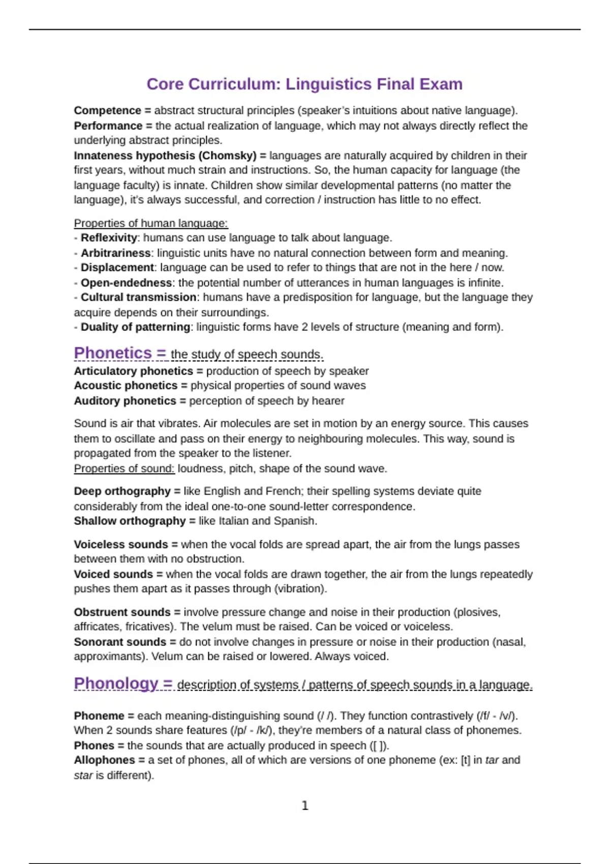 - Duality of patterning: linguistic forms have 2 levels of structure (meaning and form).