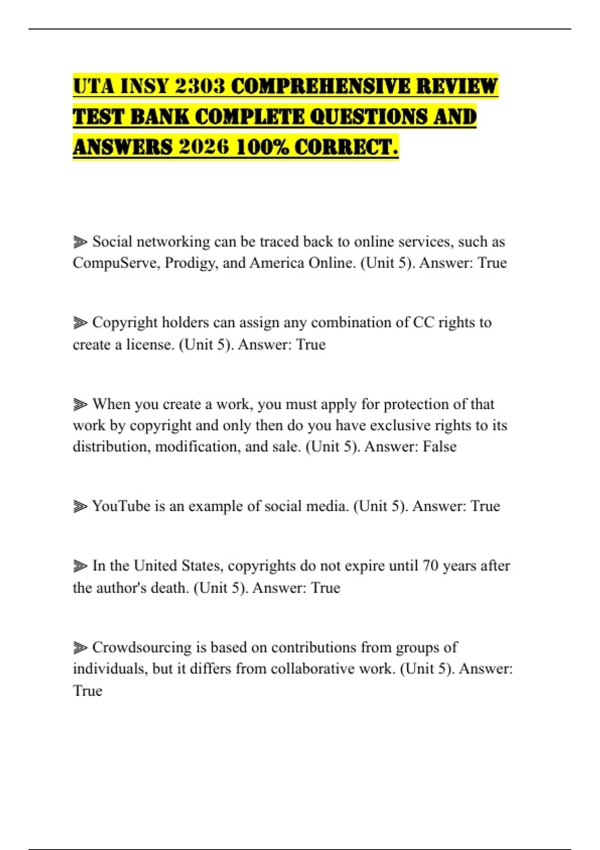 content. (Unit 5). Answer: True