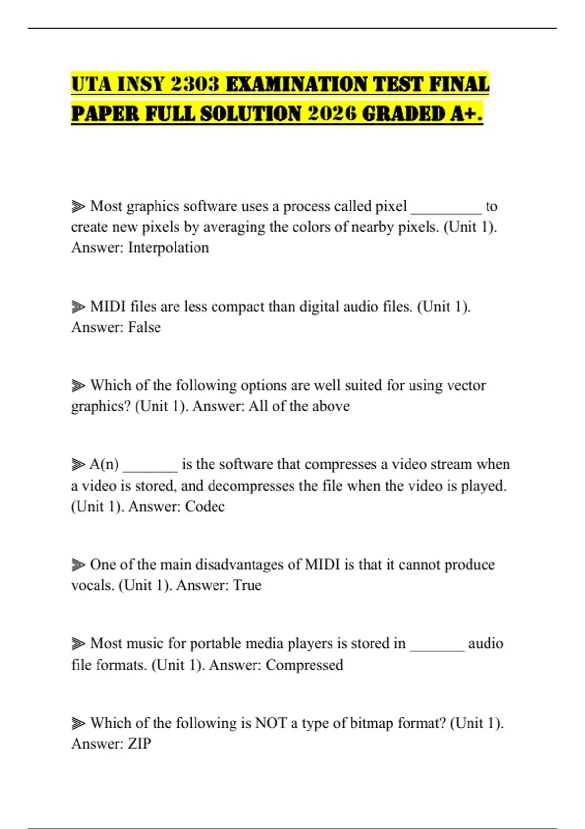UTA INSY 2303 EXAMINATION TEST FINAL PAPER FULL SOLUTION 2026 GRADED A+