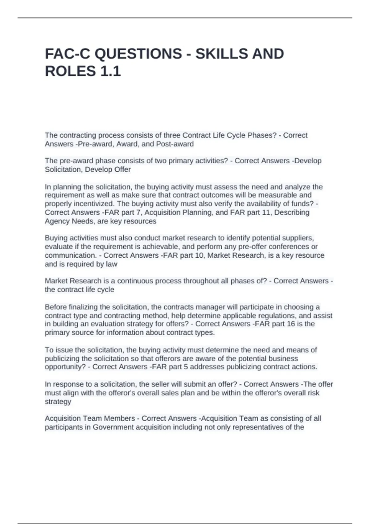 Correct Answers -FAR part 7, Acquisition Planning, and FAR part 11, Describing