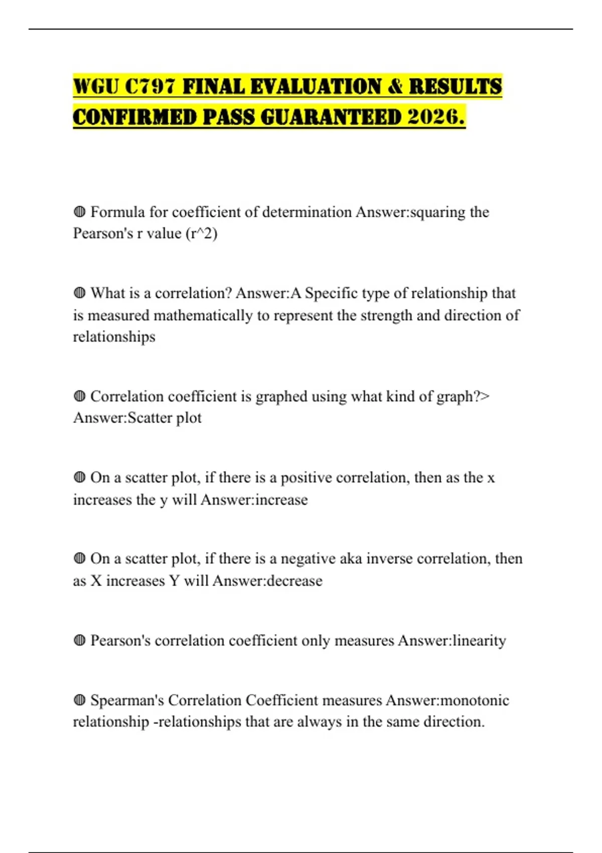 ◍ Spearman's Correlation Coefficient measures Answer:monotonic