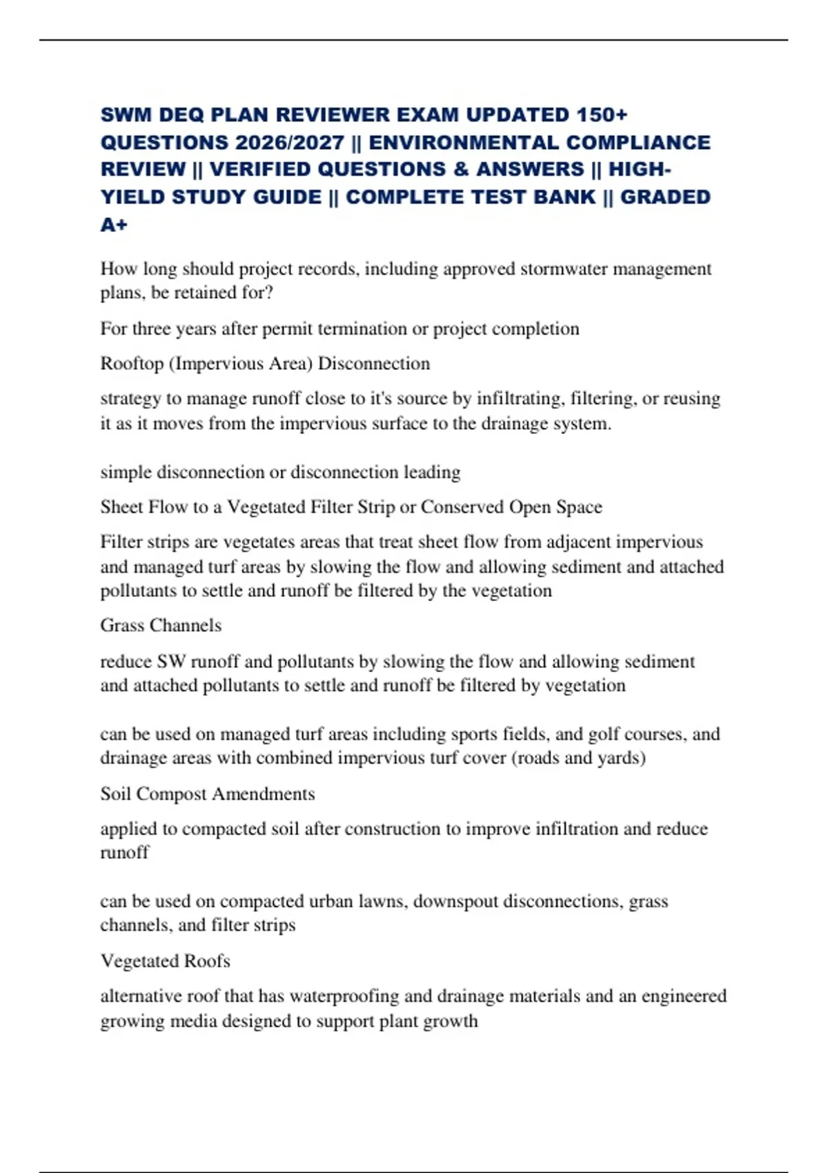 one of the following alternative runoff reduction practices: 1. soil compost