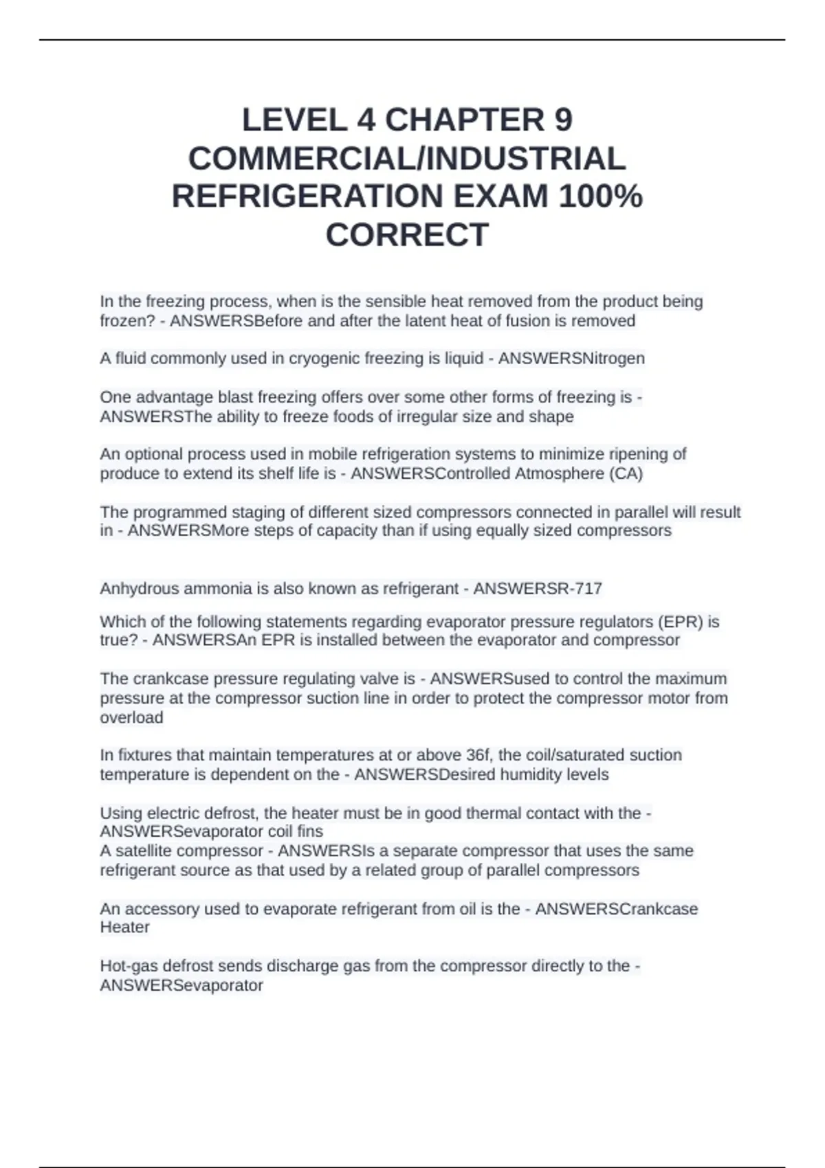 LEVEL 4 CHAPTER 9 COMMERCIAL/INDUSTRIAL REFRIGERATION EXAM 100% CORRECT