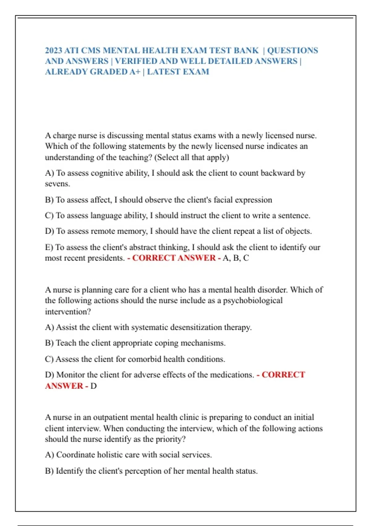 ALREADY GRADED A+ | LATEST EXAM