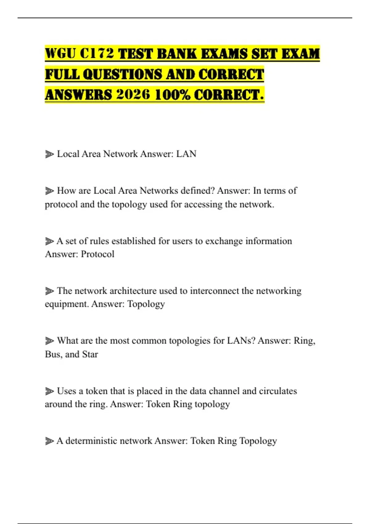 WGU C172 TEST BANK EXAMS SET EXAM FULL QUESTIONS AND CORRECT ANSWERS 2026 100% CORRECT
