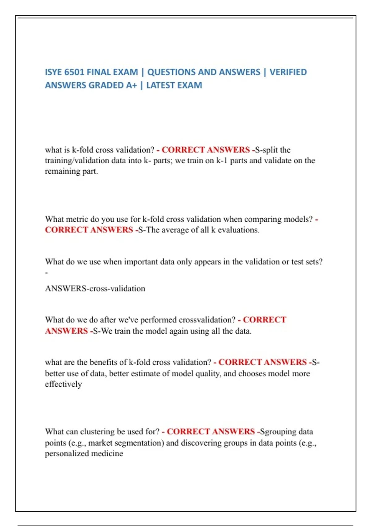 ISYE 6501 FINAL EXAM | QUESTIONS AND ANSWERS | VERIFIED