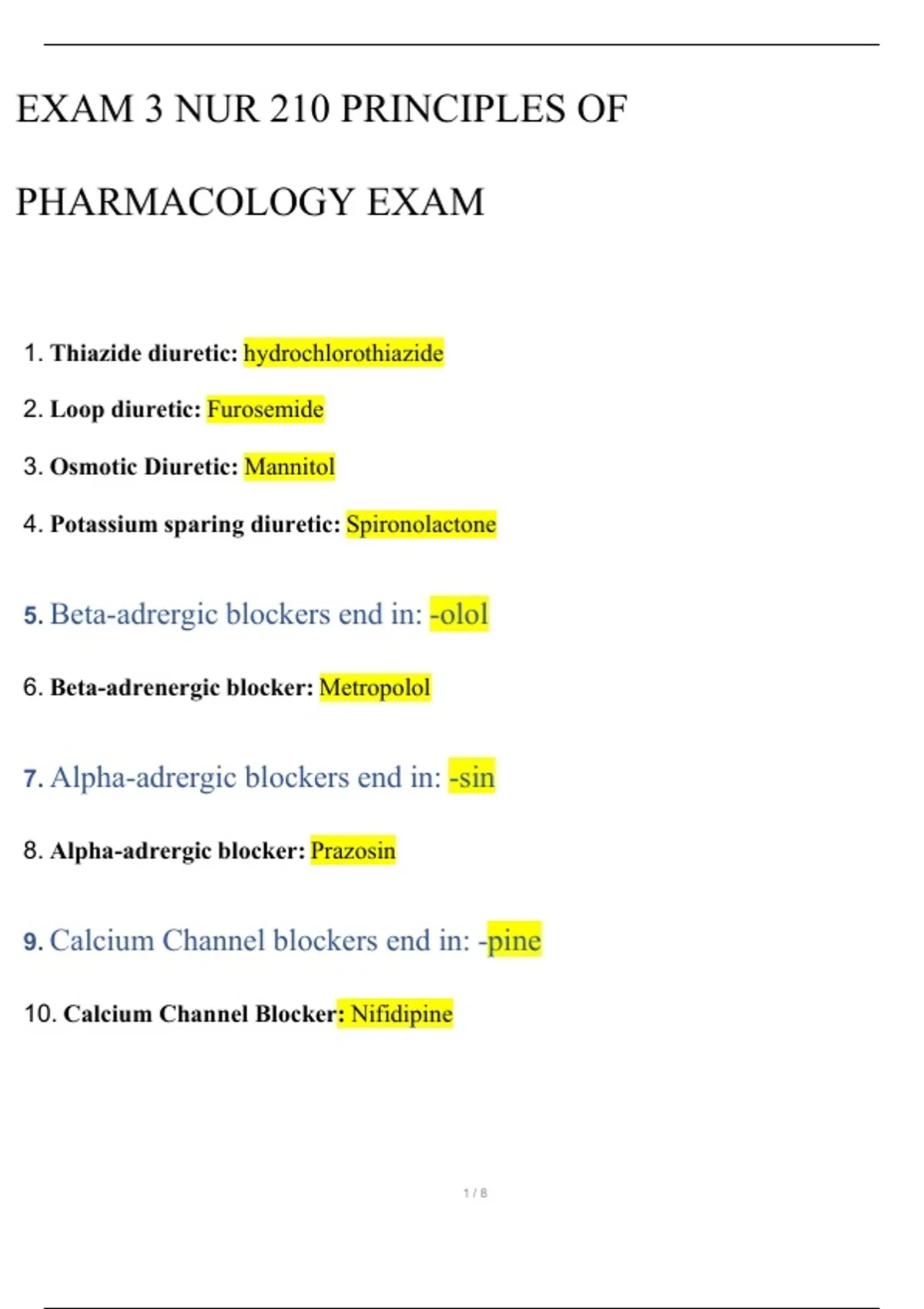 9. Calcium Channel blockers end in: -pine