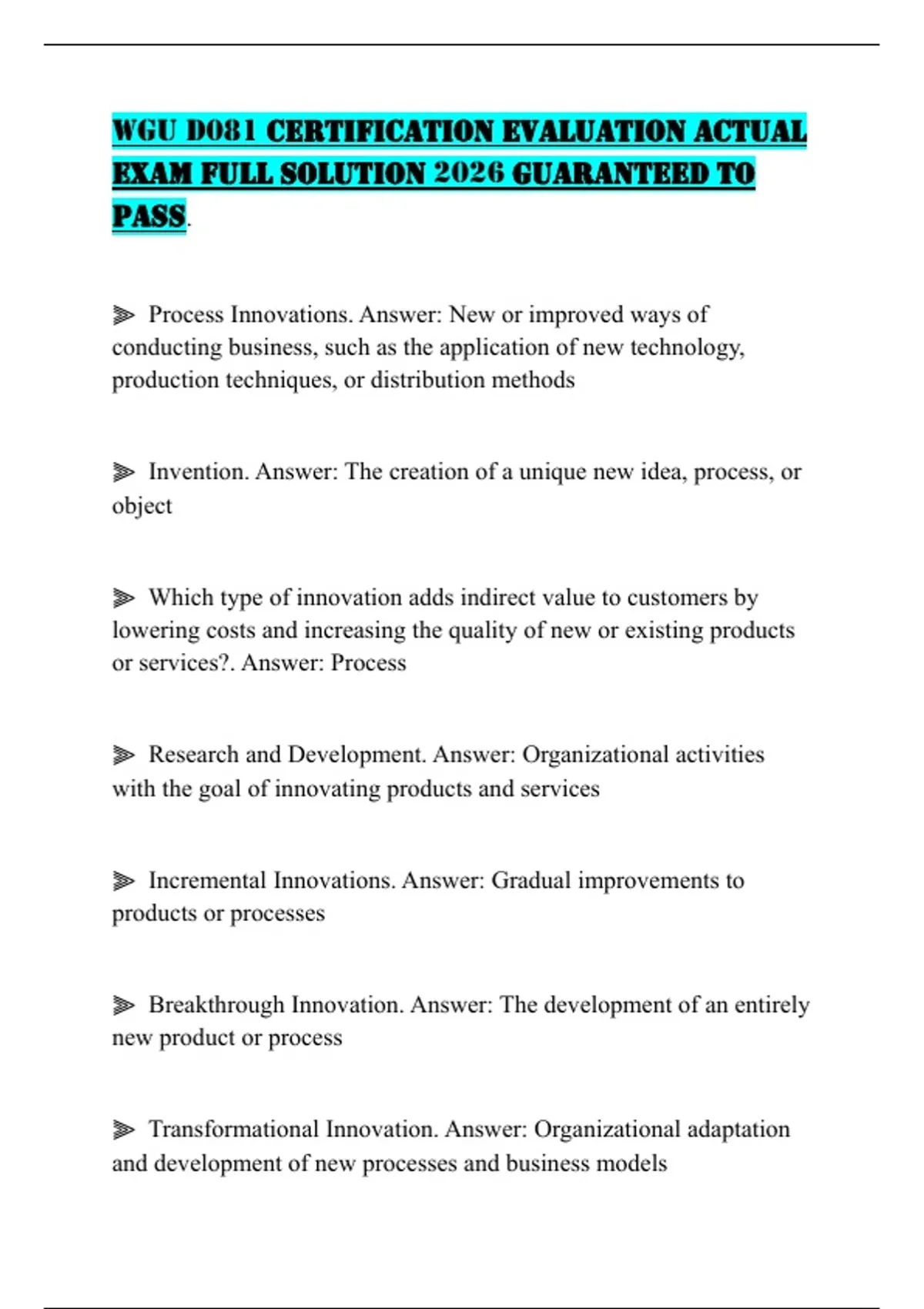 WGU D081 CERTIFICATION EVALUATION ACTUAL EXAM FULL SOLUTION 2026 GUARANTEED TO PASS