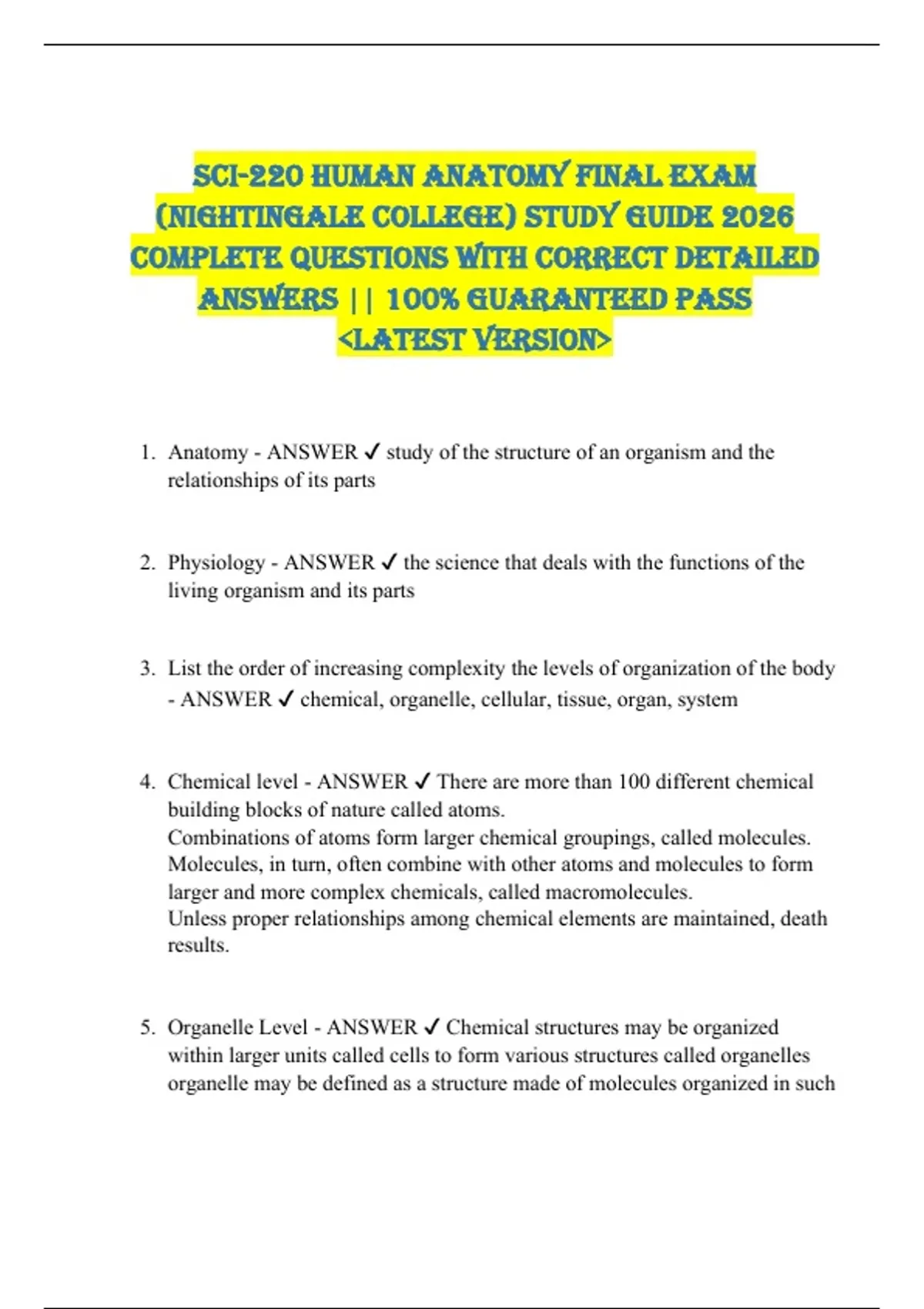 - ANSWER ✔ chemical, organelle, cellular, tissue, organ, system