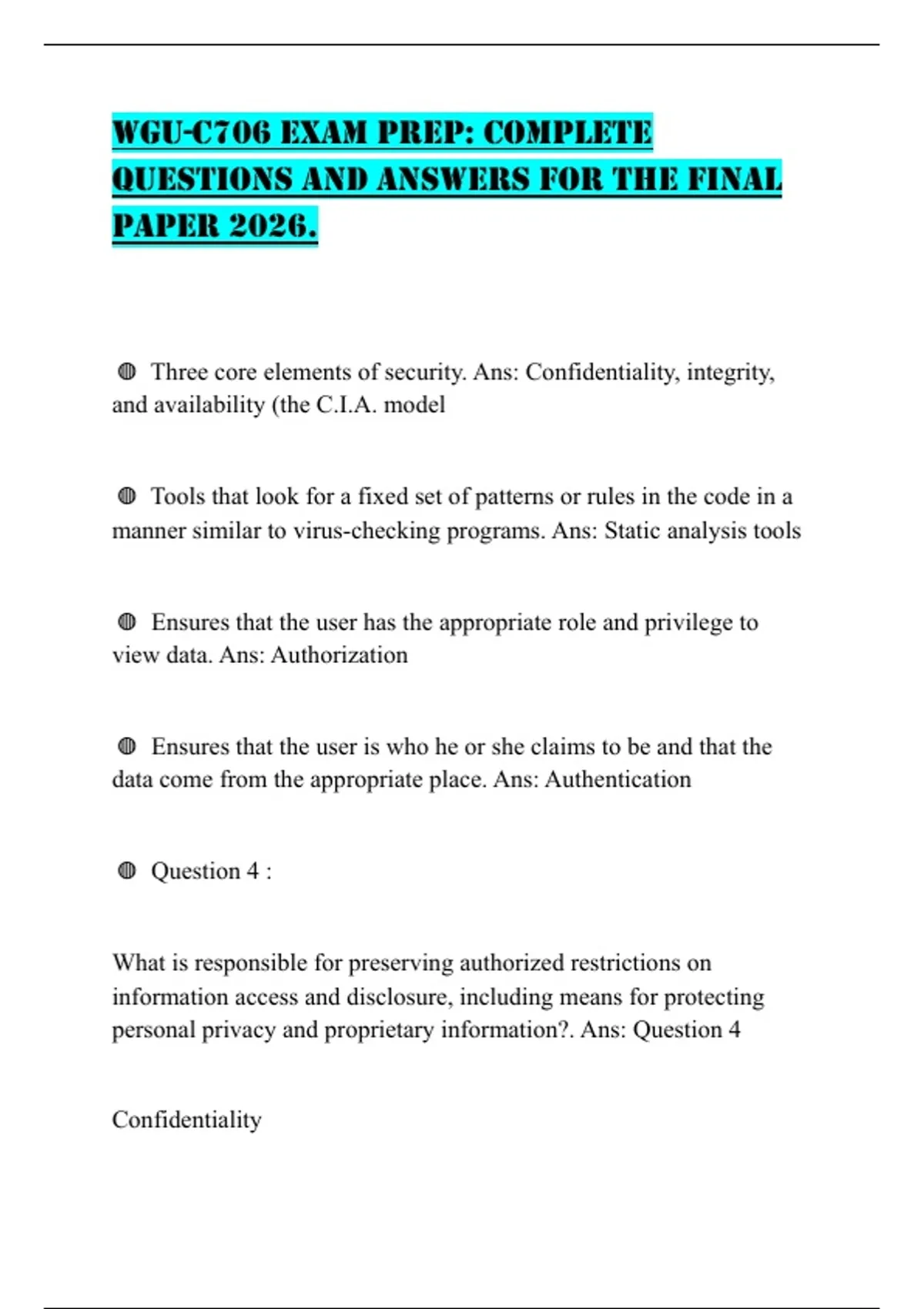 WGU-C706 EXAM PREP: COMPLETE QUESTIONS AND ANSWERS FOR THE FINAL PAPER 2026.