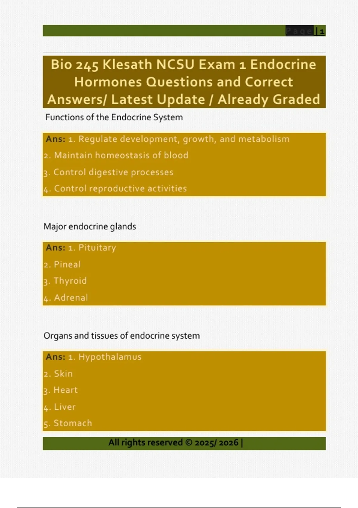 Bio 245 Klesath NCSU Exam 1 Endocrine