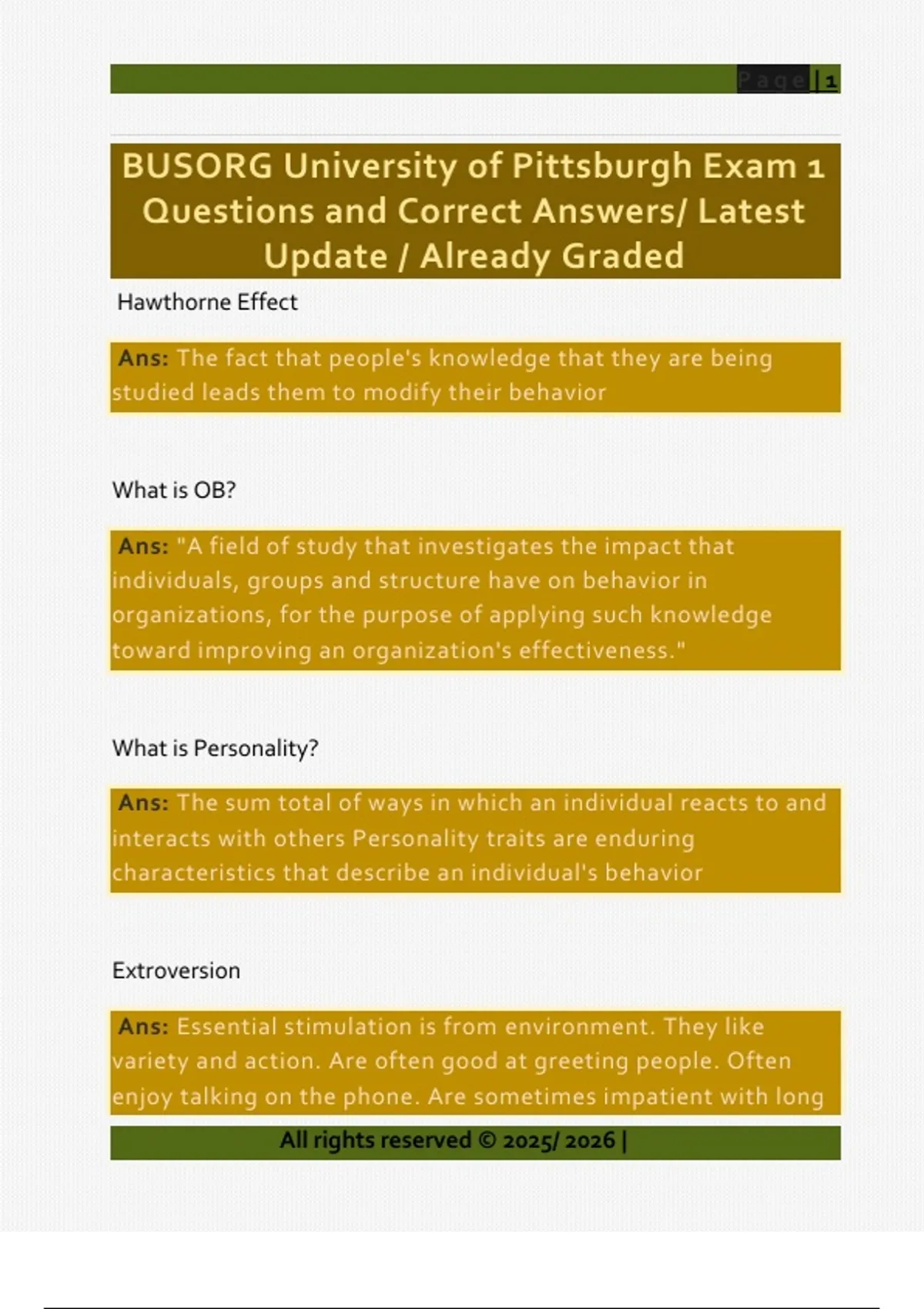 Questions and Correct Answers/ Latest