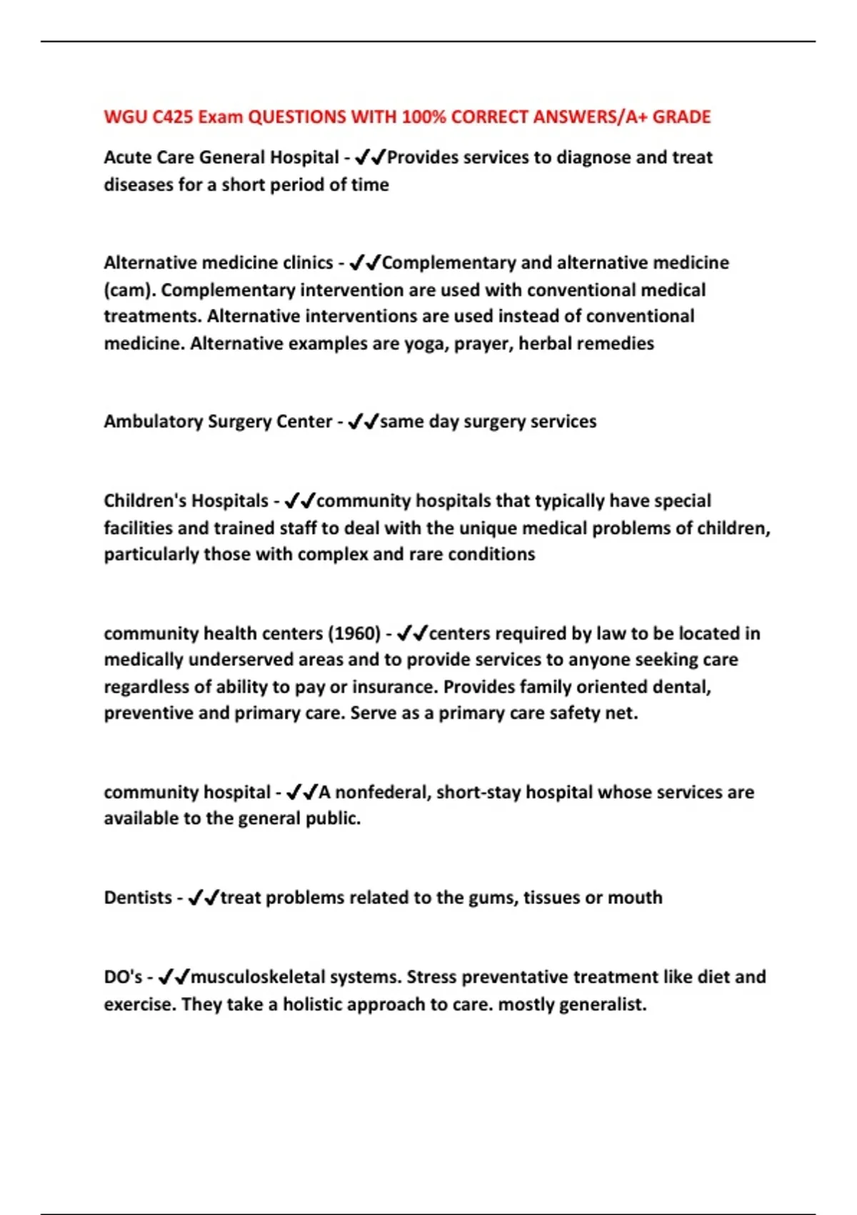 WGU C425 Exam QUESTIONS WITH 100% CORRECT ANSWERS/A+ GRADE