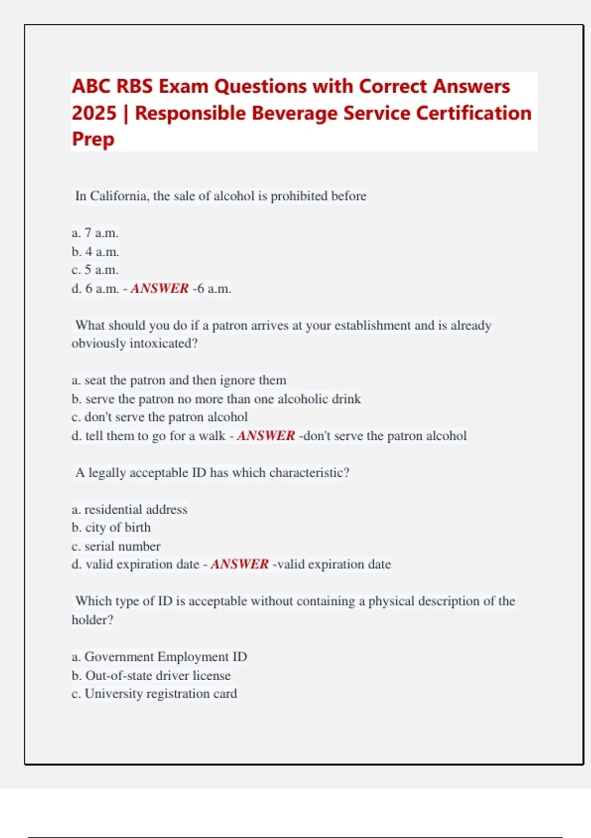 d. tell them to go for a walk - ANSWER -don't serve the patron alcohol