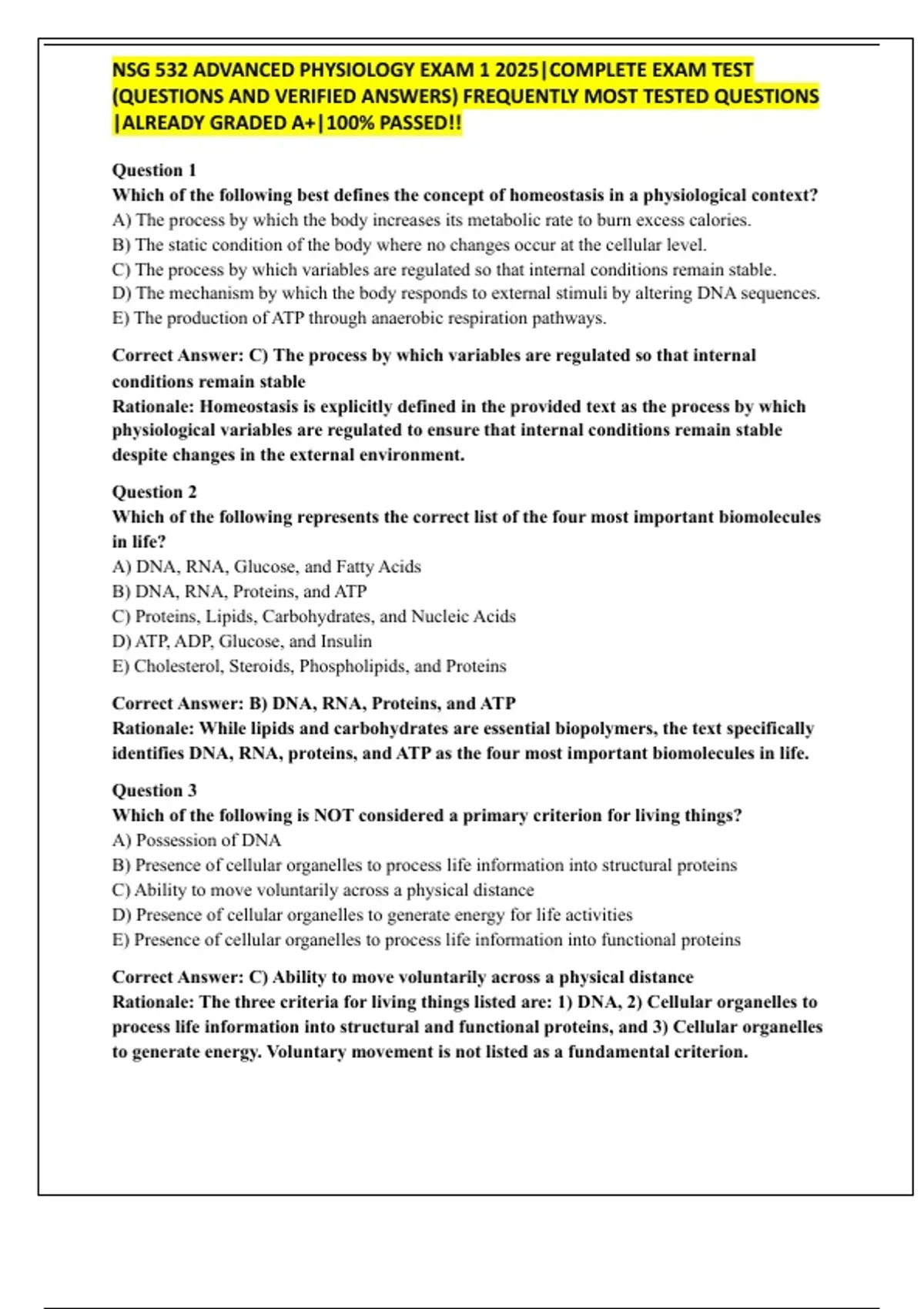 (QUESTIONS AND VERIFIED ANSWERS) FREQUENTLY MOST TESTED QUESTIONS