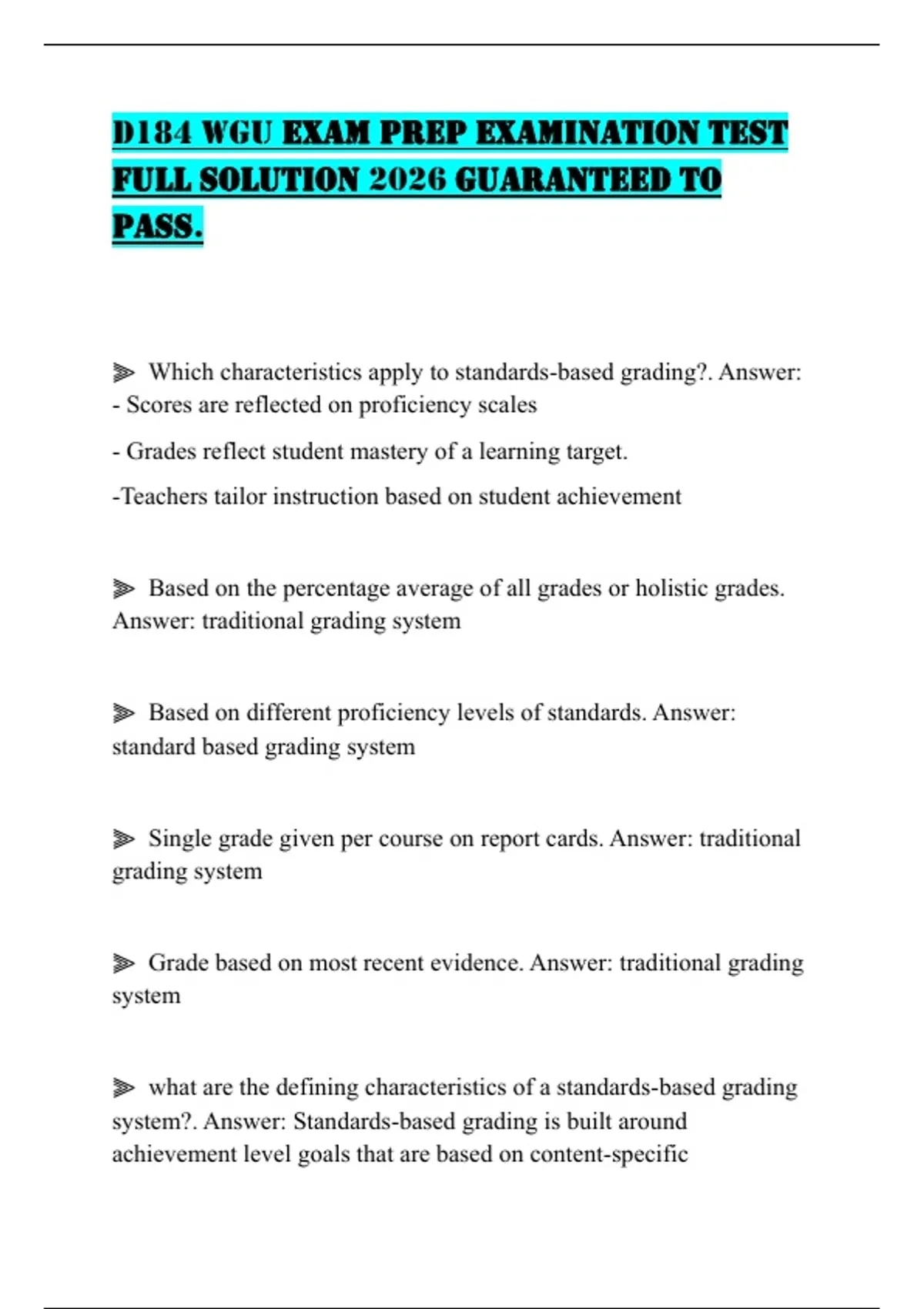 ⫸ Which characteristics apply to standards-based grading?. Answer: