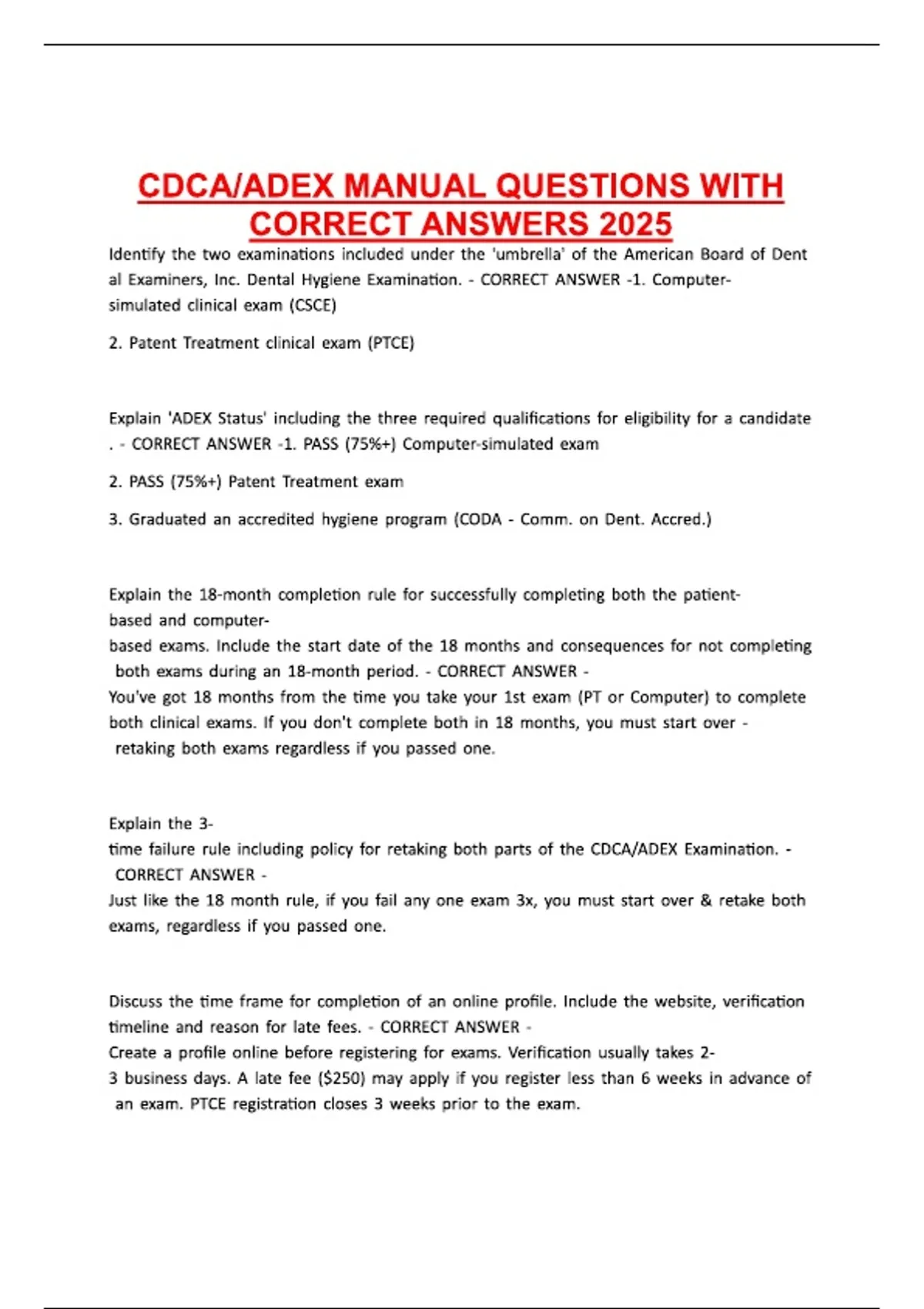 CDCA-ADEX MANUAL QUESTIONS WITH CORRECT ANSWERS