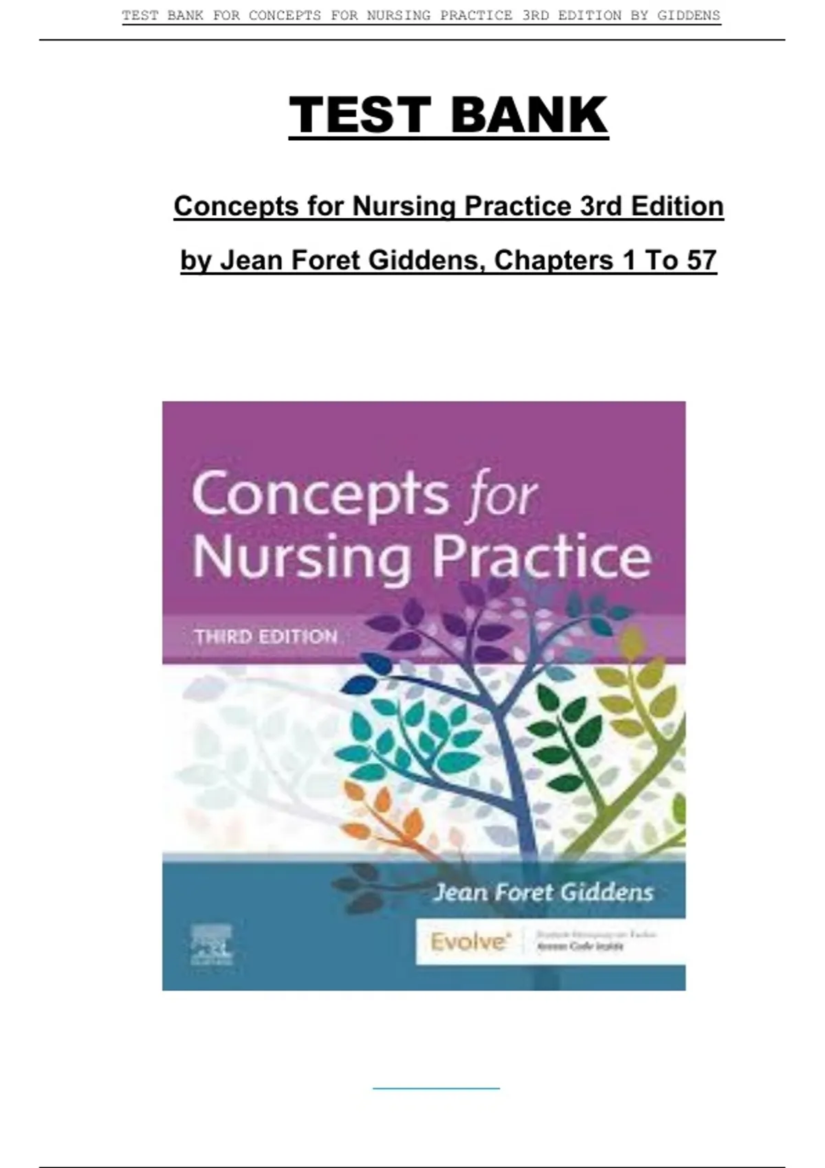 , TEST BANK FOR CONCEPTS FOR NURSING PRACTICE 3RD EDITION BY GIDDENS