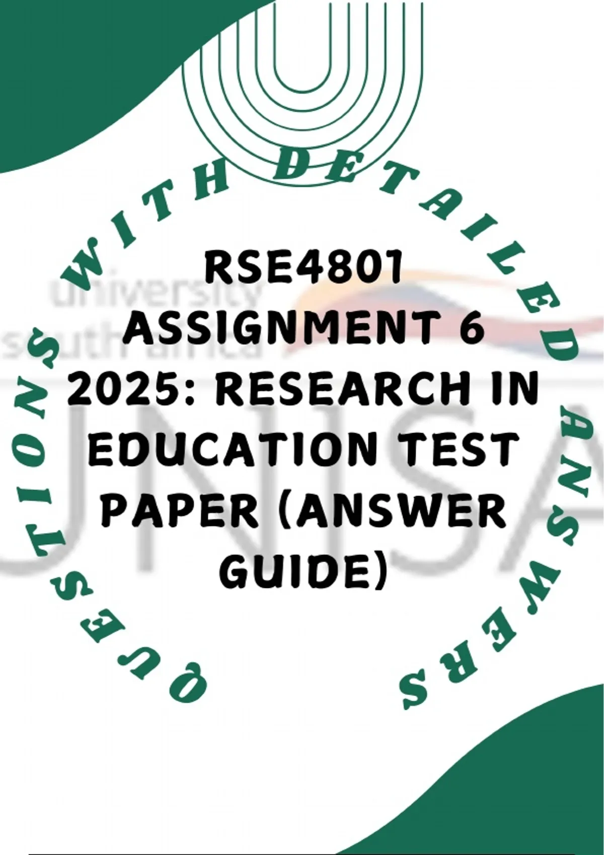 RSE4801 ASSIGNMENT 6 2025 (RSEARCH IN EDUCATION) – Due 23 January 2026