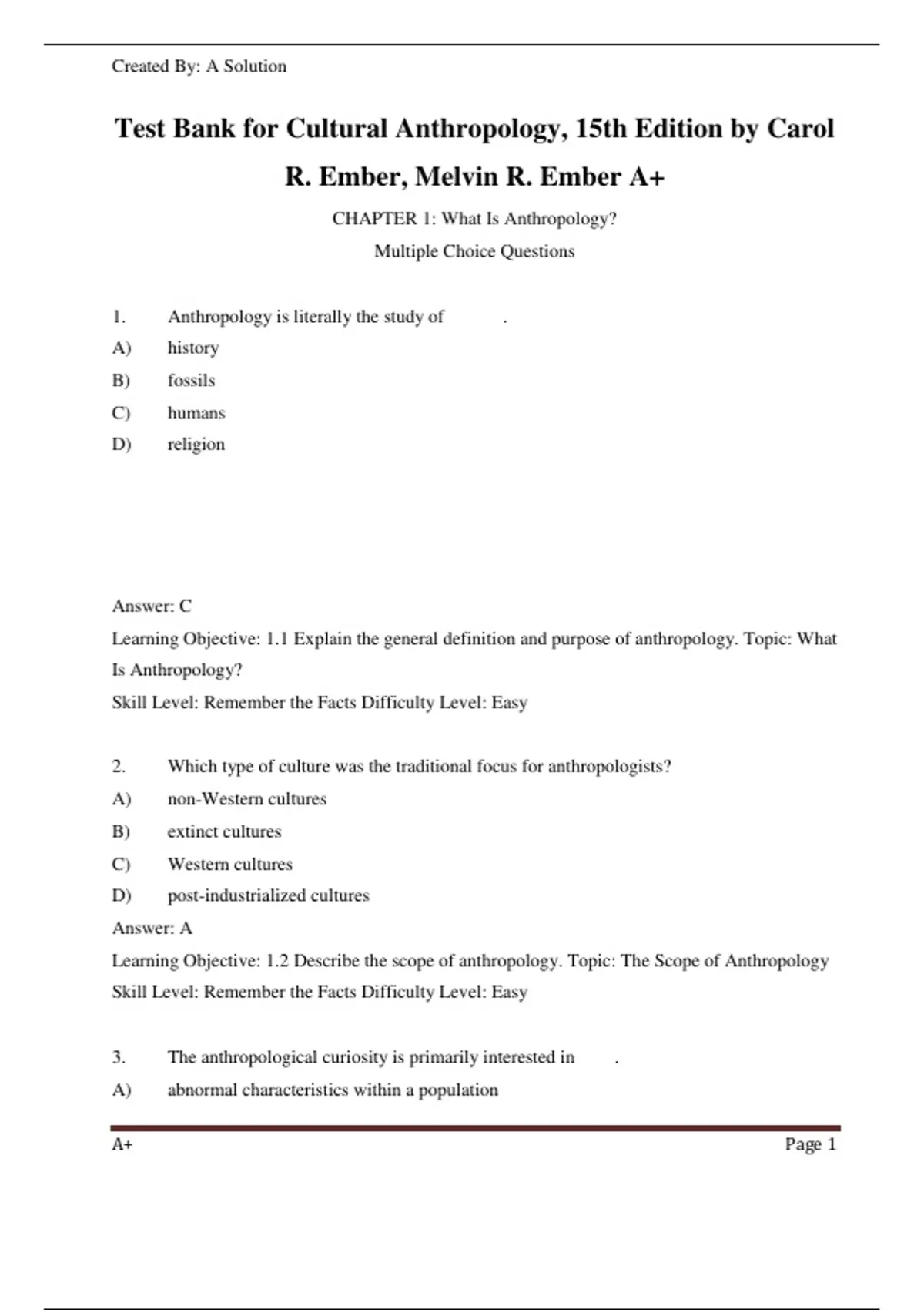 Test Bank for Cultural Anthropology, 15th Edition by Carol
