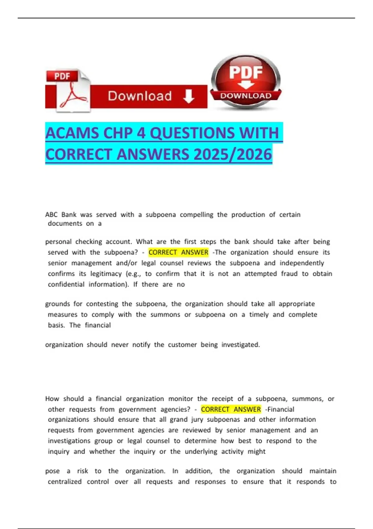 ACAMS CHP 4 QUESTIONS WITH