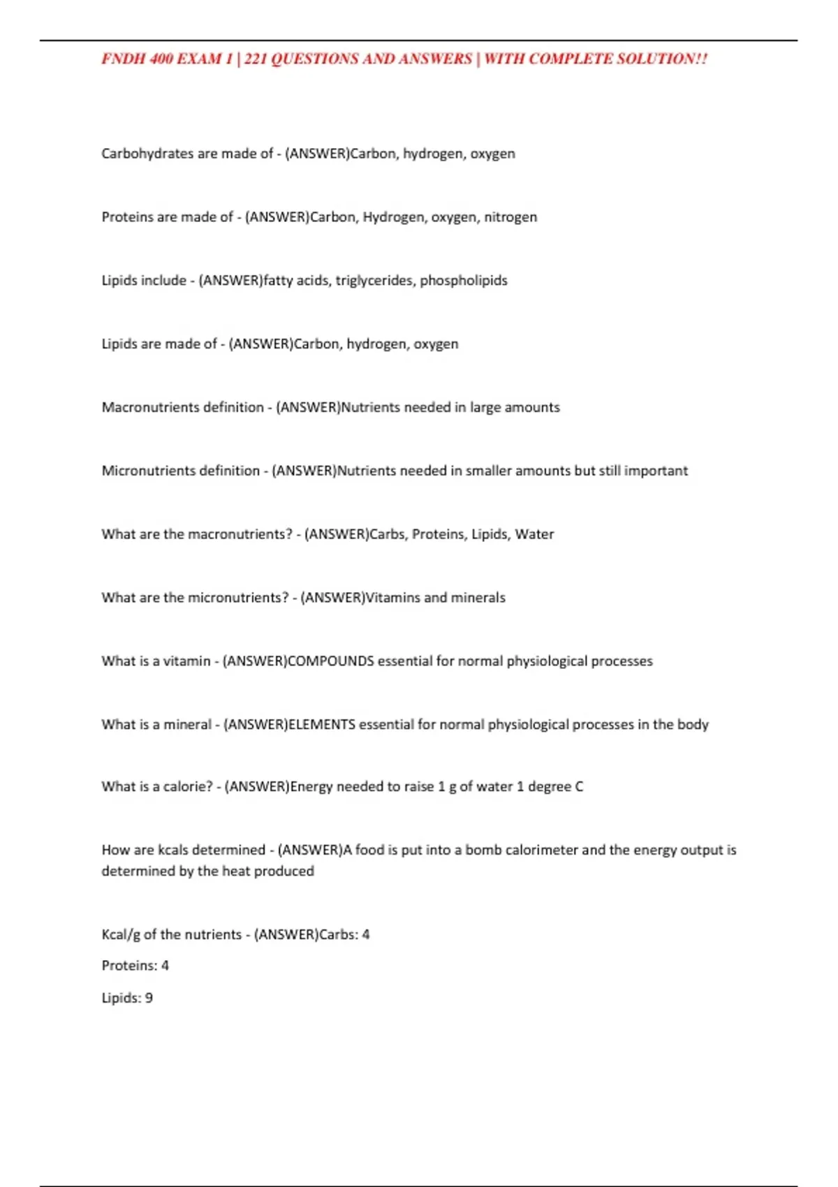 , FNDH 400 EXAM 1 | 221 QUESTIONS AND ANSWERS | WITH COMPLETE SOLUTION!!