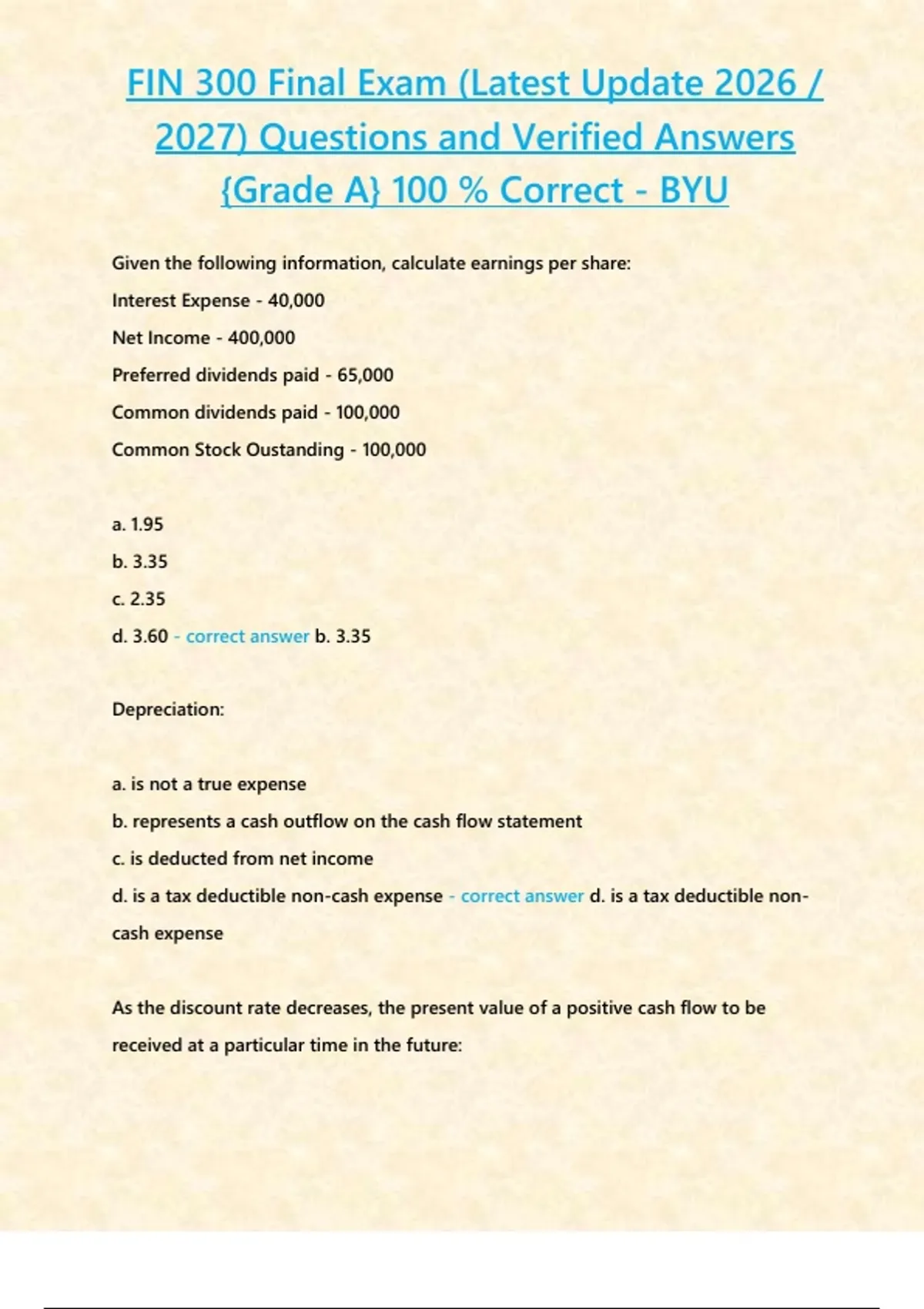 d. is a tax deductible non-cash expense - correct answer d. is a tax deductible non-