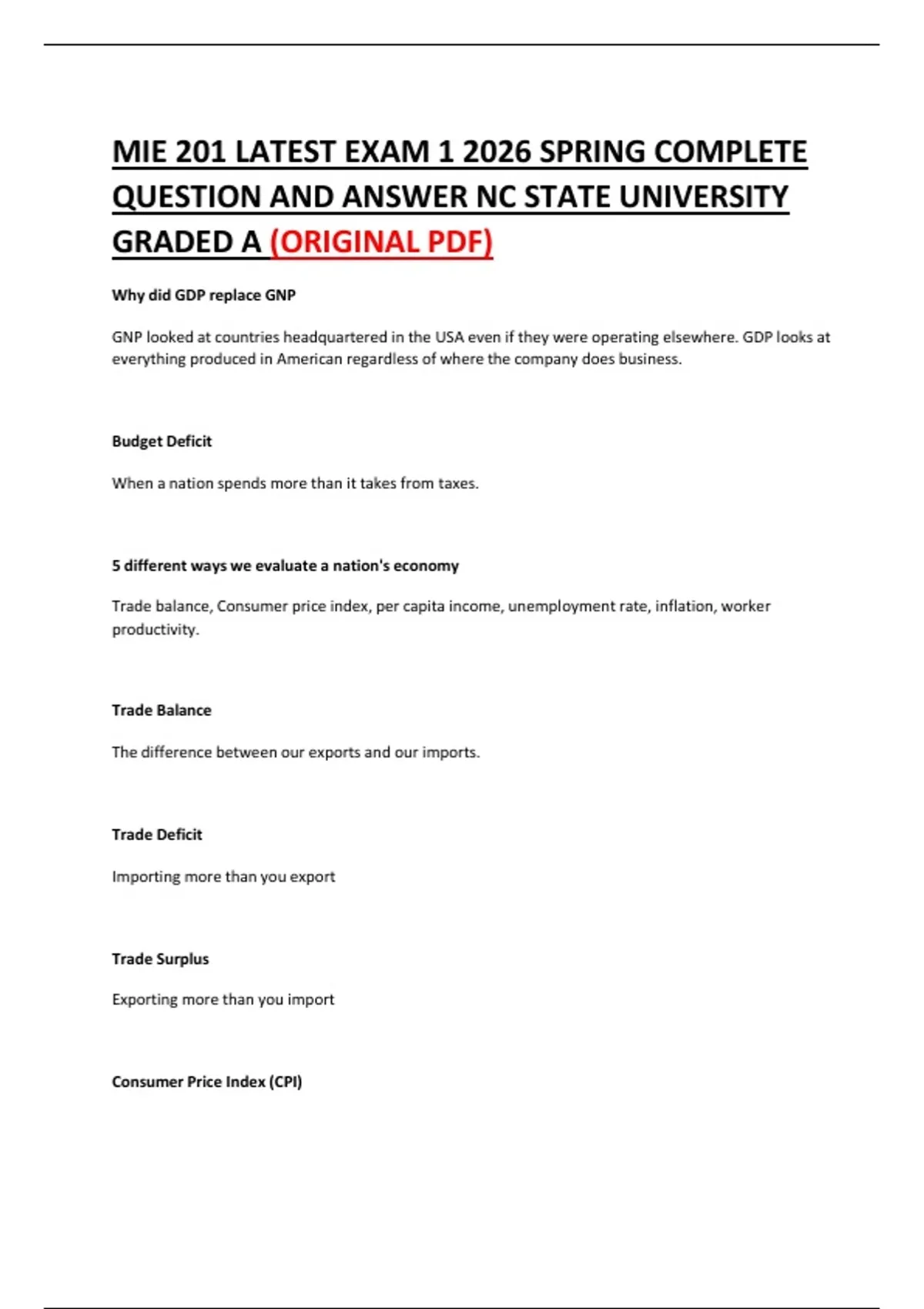 MIE 201 LATEST EXAM 1 2026 SPRING COMPLETE