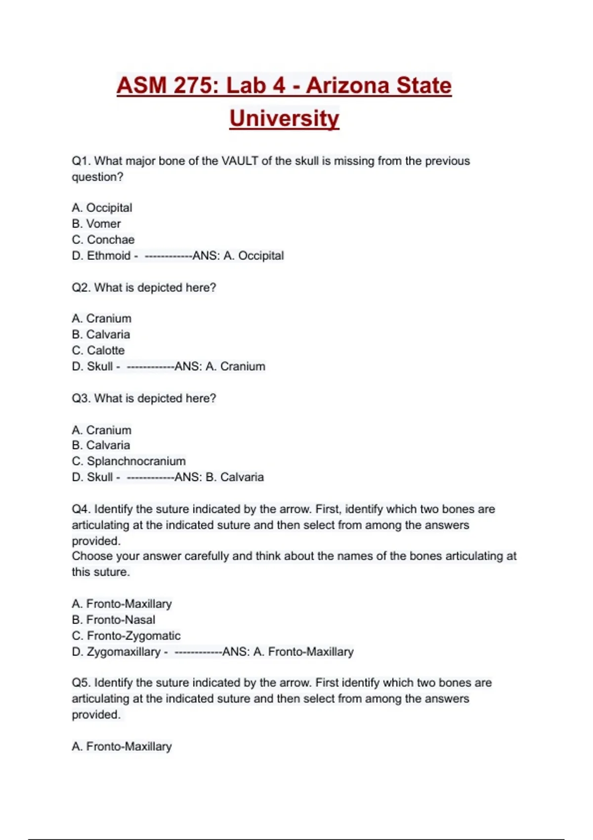 ASM 275: Lab 4 - Arizona State University QUESTIONS AND CORRECT ANSWERS (A+ GRADED 100% VERIFIED)| 2025/2026