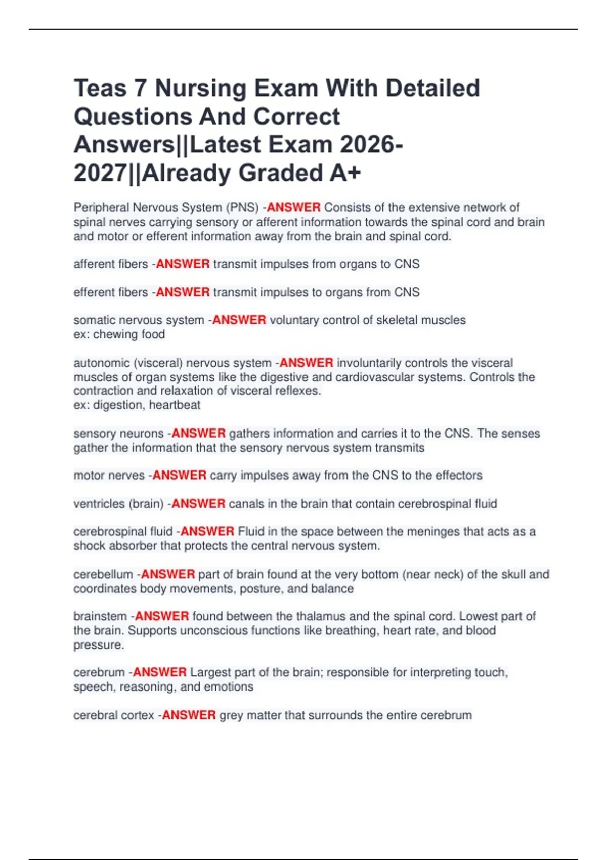 Welcome to MasterDocs Official Store — your ultimate destination for verified exam papers, detailed study guides, and high-quality notes trusted by hundreds of students worldwide. I specialize in providing accurate, well-organized, and up-to-date exam materials that help students study smarter, not harder. Each document is carefully reviewed, clearly formatted, and packed with questions and verified answers from recent exams to ensure top performance and confidence on test day. Whether you're preparing for university finals, nursing boards, accounting tests, healthcare management exams, or TEAS/NCLEX practice, you’ll find the exact material you need — concise, reliable, and results-driven. ✅ Why Students Choose My Docs: Verified answers and updated content Professionally formatted for quick review Guaranteed accuracy and clarity Affordable prices for premium quality 100% student satisfaction