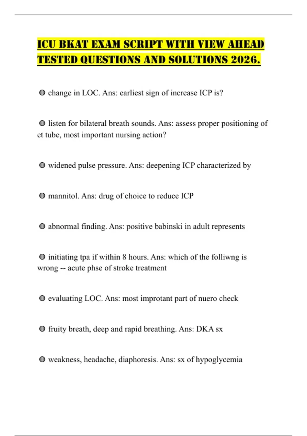 ICU BKAT EXAM SCRIPT WITH VIEW AHEAD