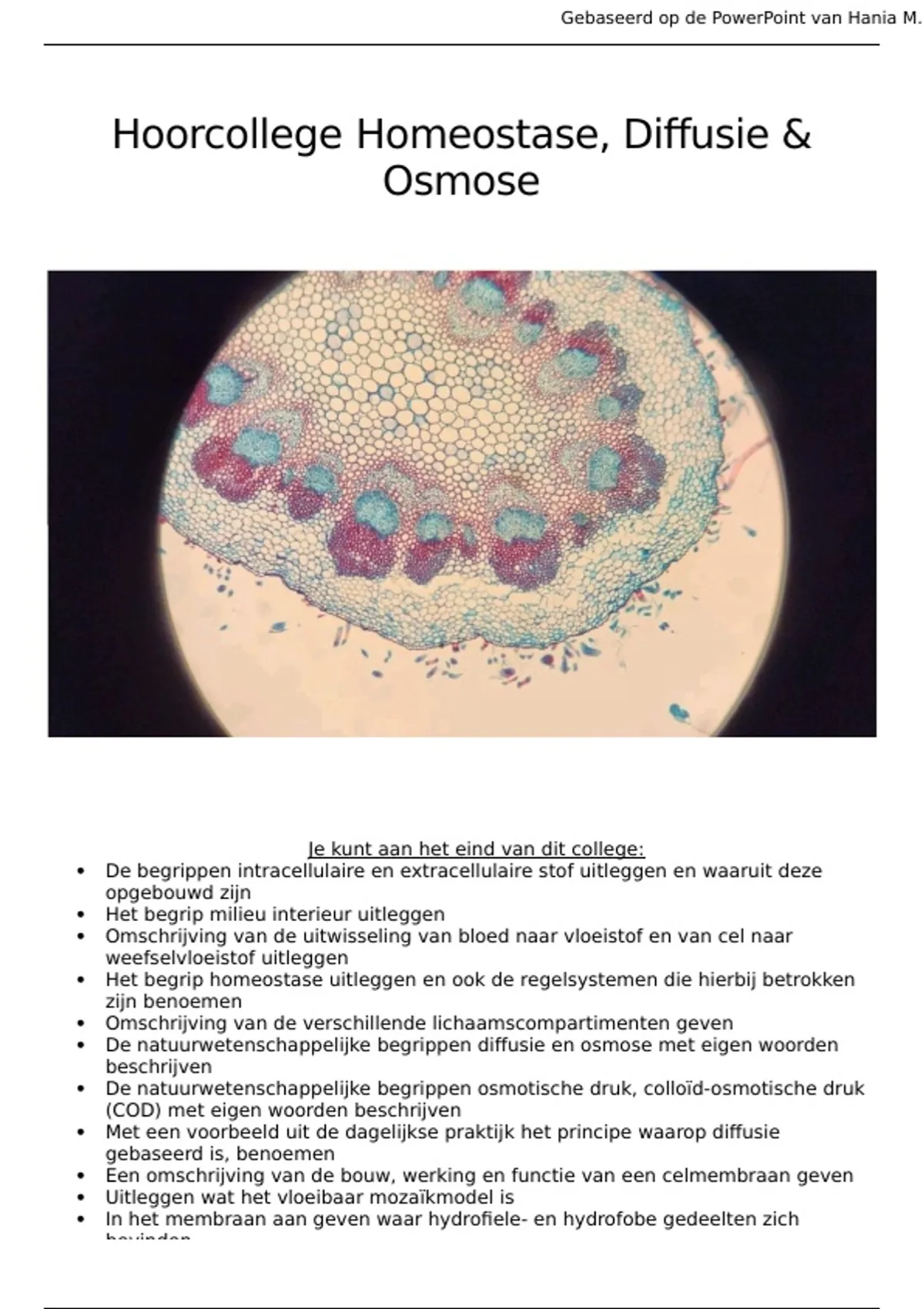 Hoorcollege Homeostase, Osmose & Celtransport – Uitgebreide en Begrijpelijke Samenvatting