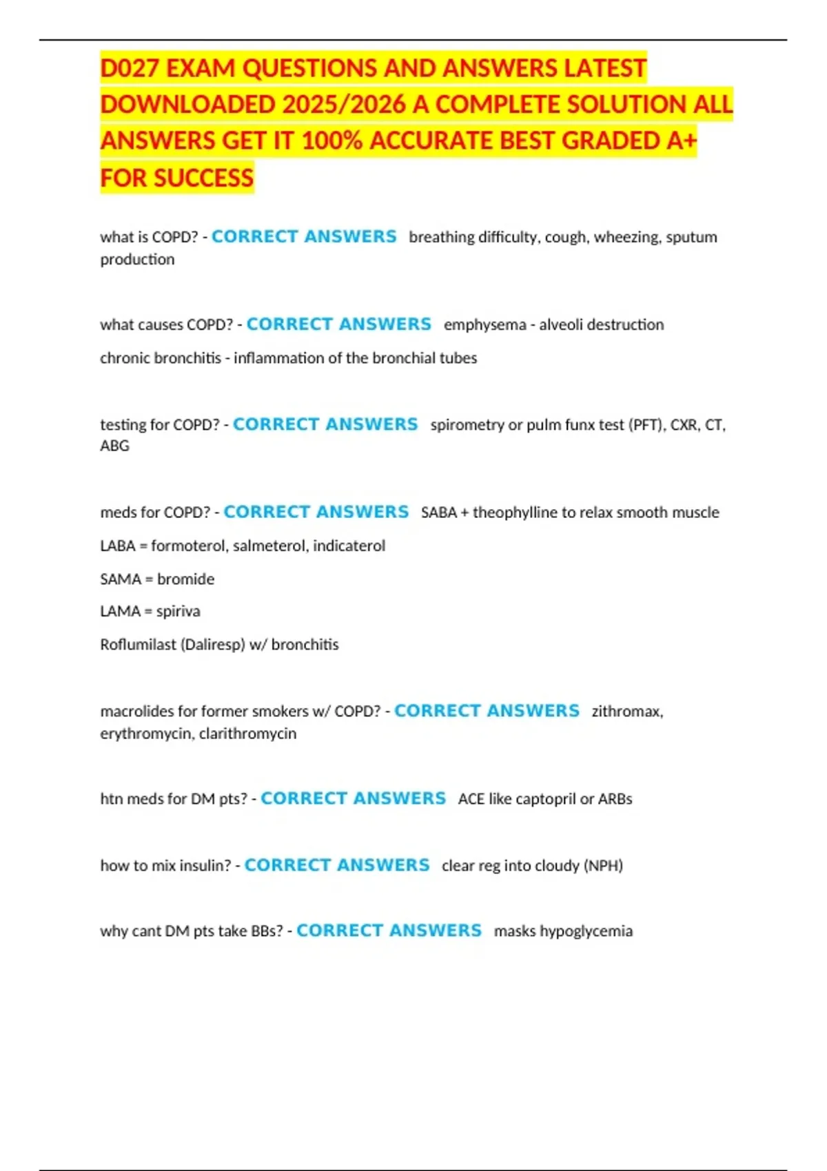 ,D027 EXAM QUESTIONS AND ANSWERS LATEST