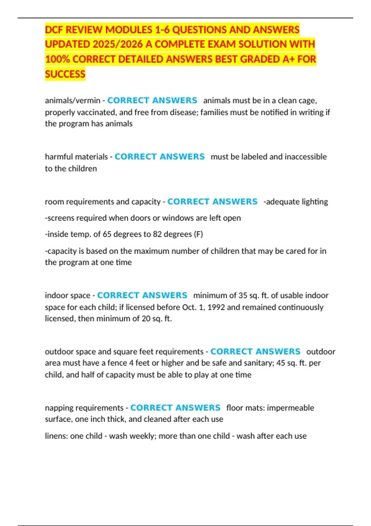 ,DCF REVIEW MODULES 1-6 QUESTIONS AND ANSWERS