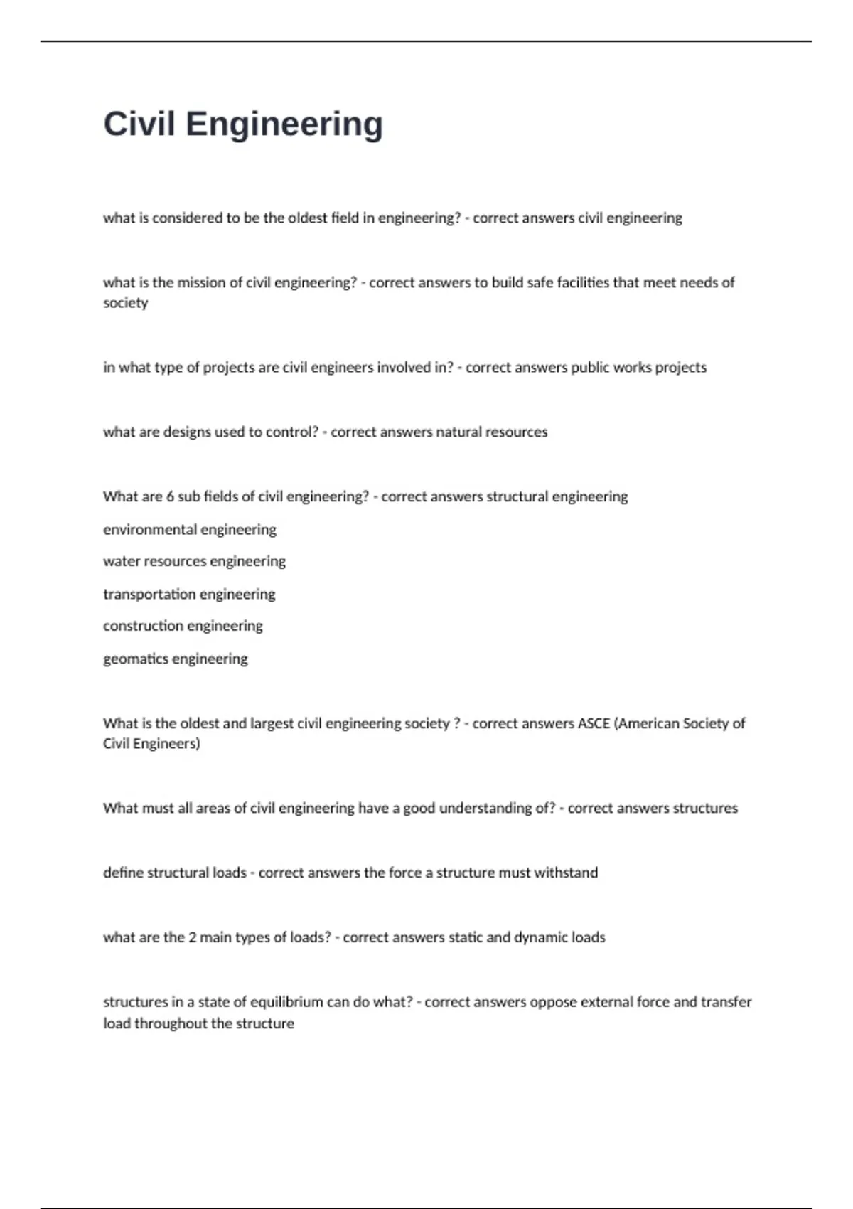 Civil Engineering Proctored Exam Questions With Accurate Answers Guaranteed Pass.