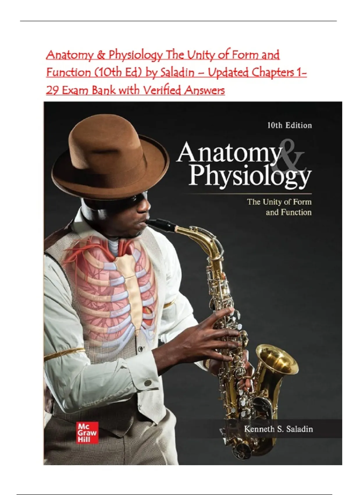 Test Bank for Anatomy & Physiology: The Unity of Form and Function 10th Edition by Saladin Chapter 1-29 Complete Guide