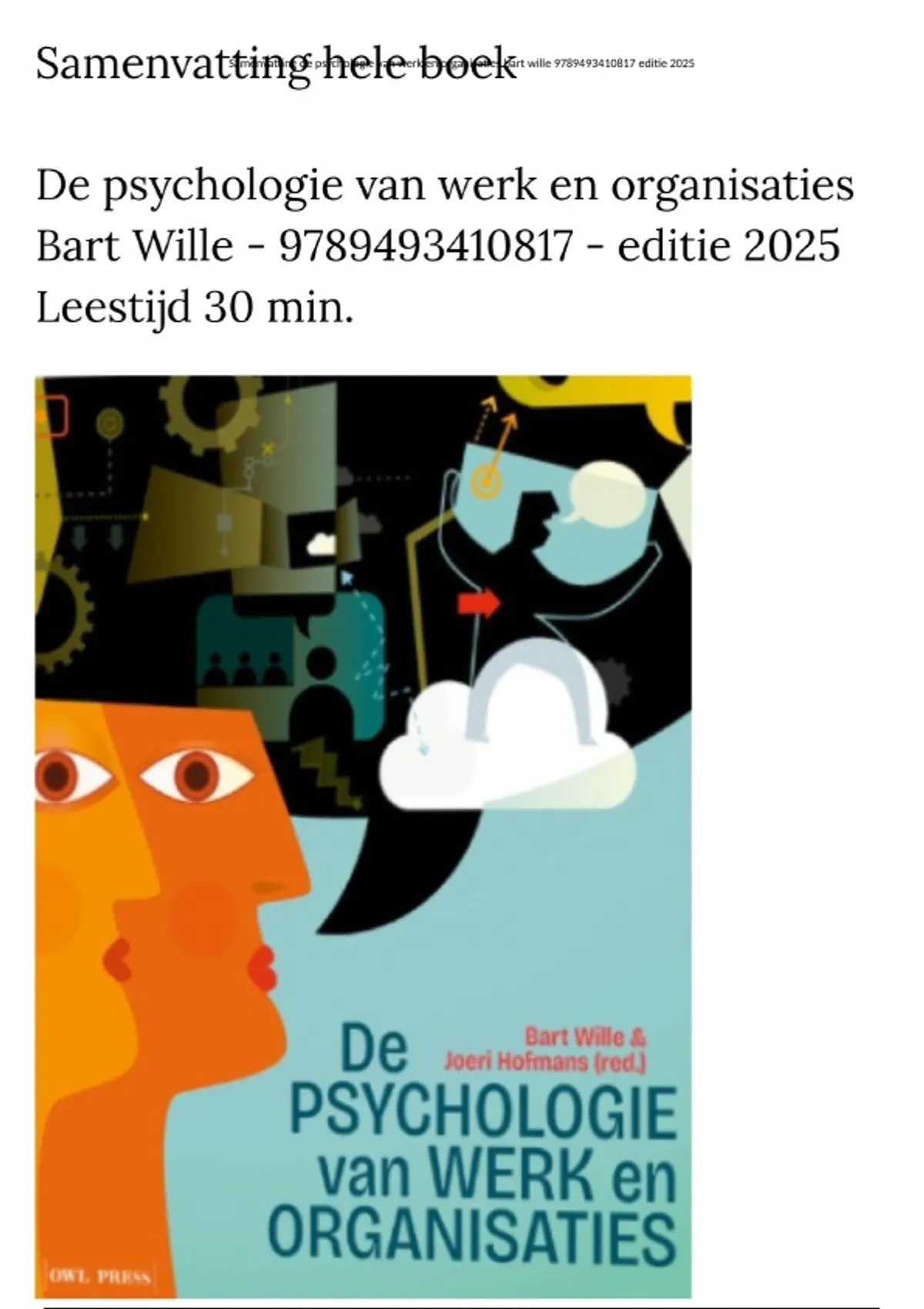 ,Samenvatting de psychologie van werk en organisaties bart wille 9789493410817 editie 2025