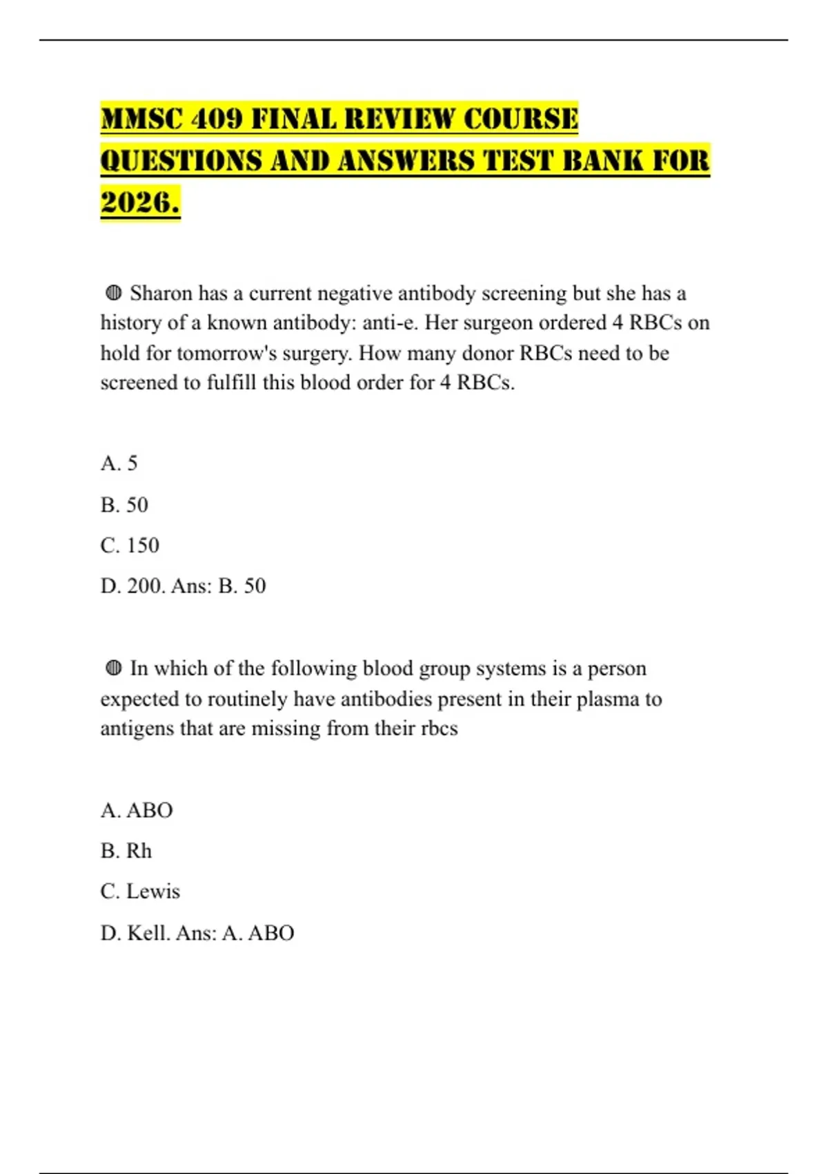 MMSC 409 FINAL REVIEW COURSE QUESTIONS AND ANSWERS TEST BANK FOR 2026