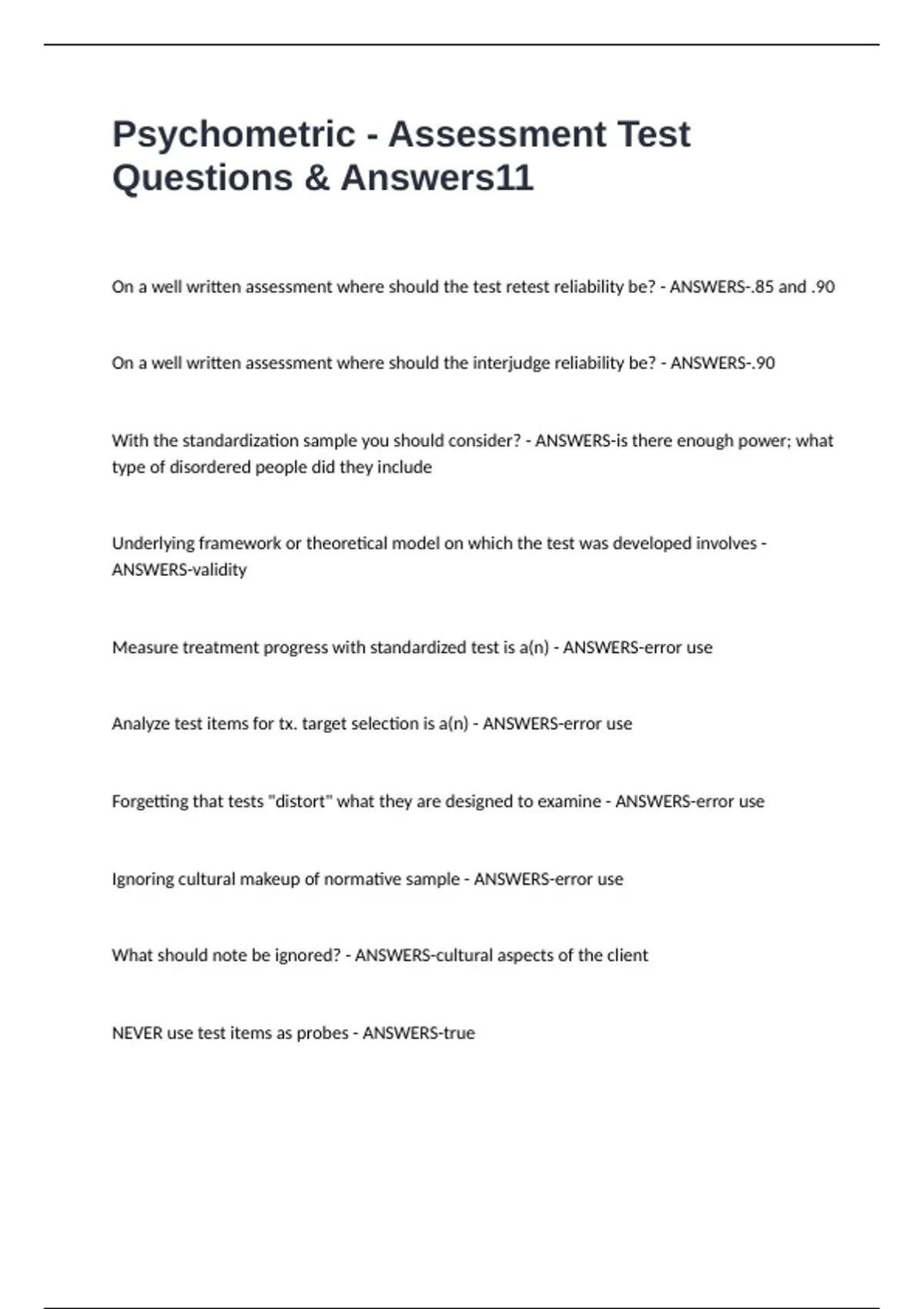 On a well written assessment where should the test retest reliability be? - ANSWERS-.85 and .90