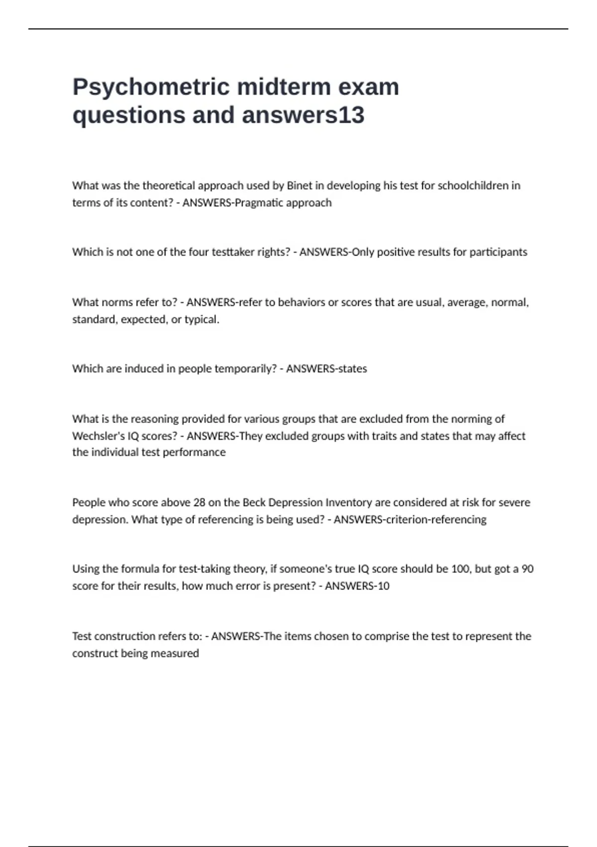 Psychometric midterm exam