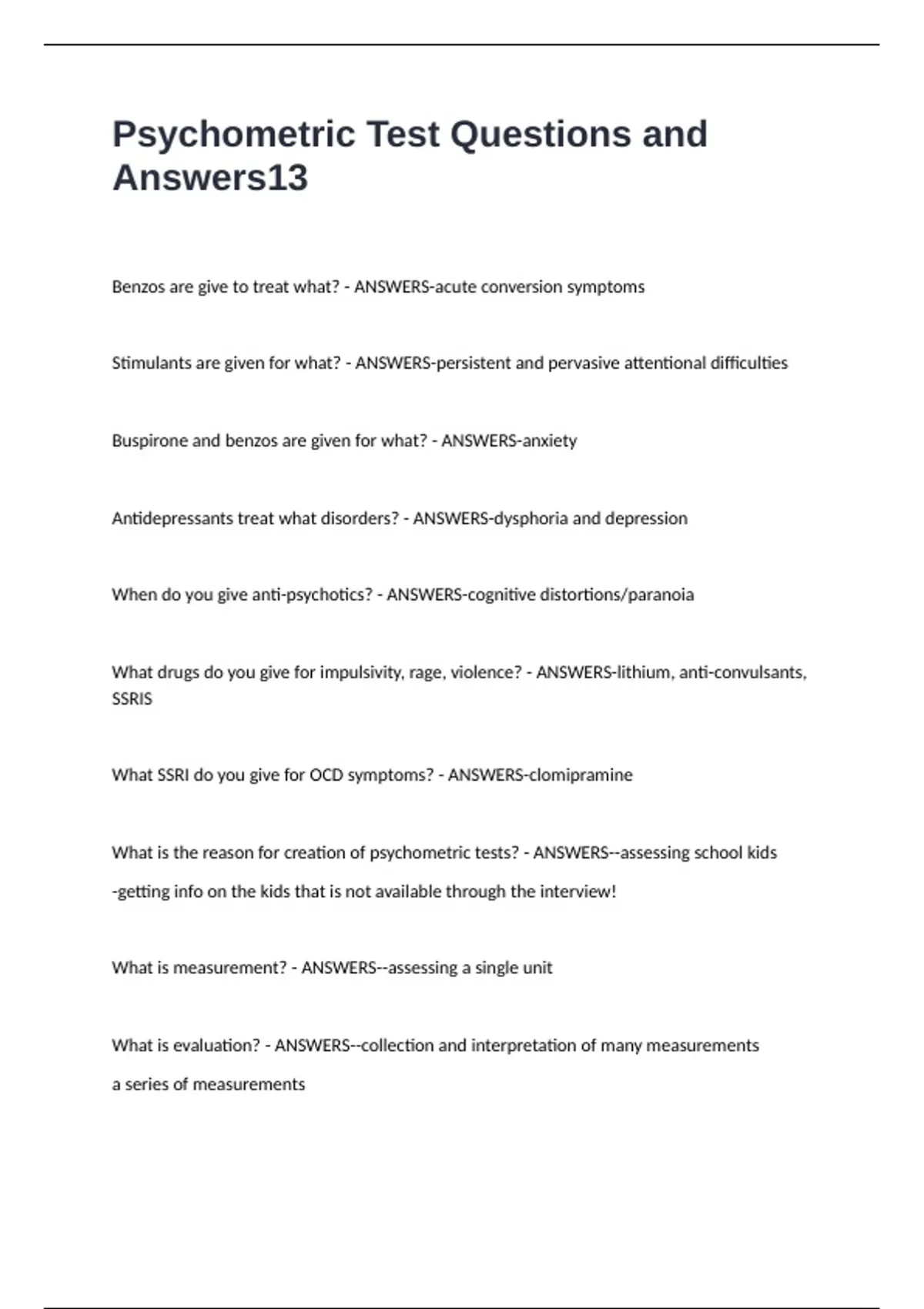 Benzos are give to treat what? - ANSWERS-acute conversion symptoms